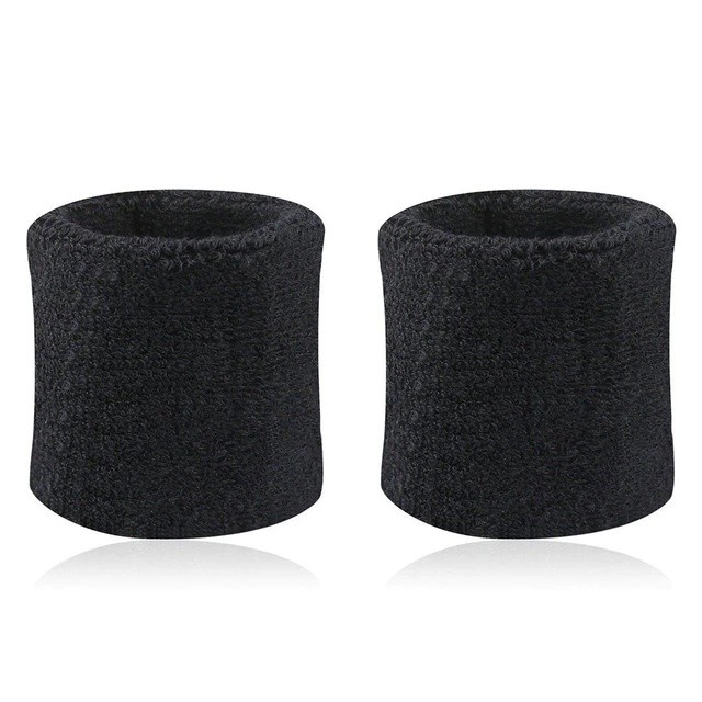 Par Munhequeiras Pulso Toalha Preta Unissex Academia Tênis Squash