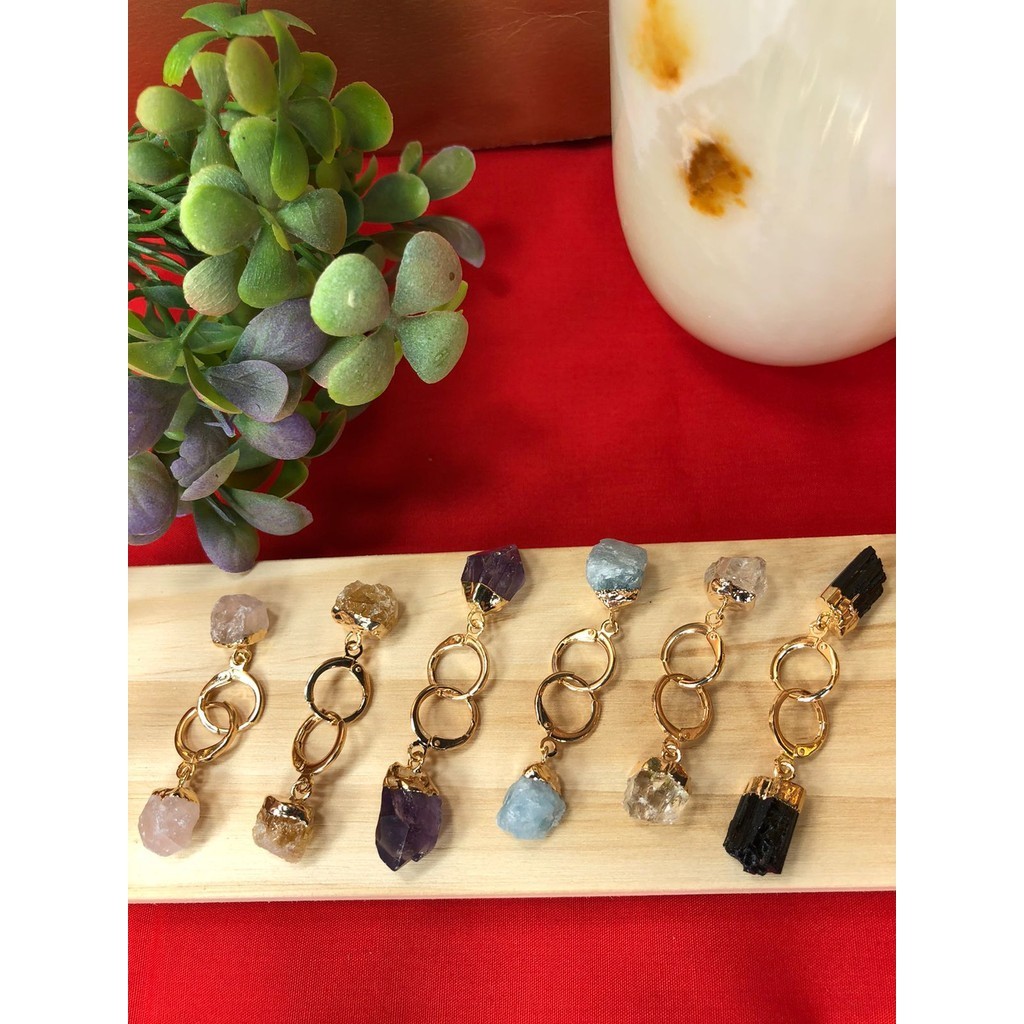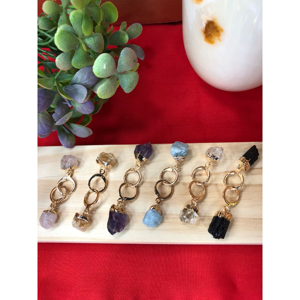 Brinco Argola Click em Pedras Naturais Dourado