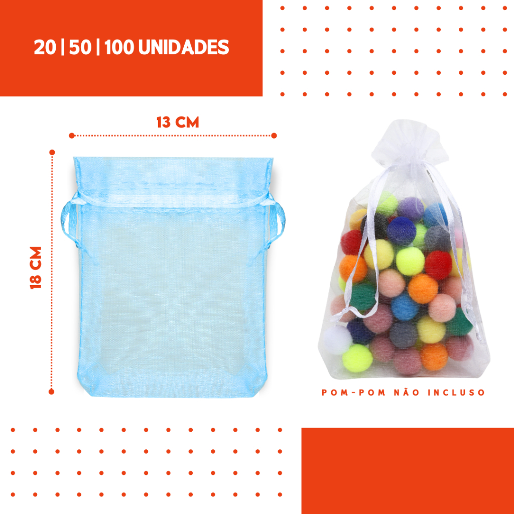 Saco Organza - Saquinho Para Lembrancinha 13x18 Diversas Cores - 20/50/100 Unidades - Nybc