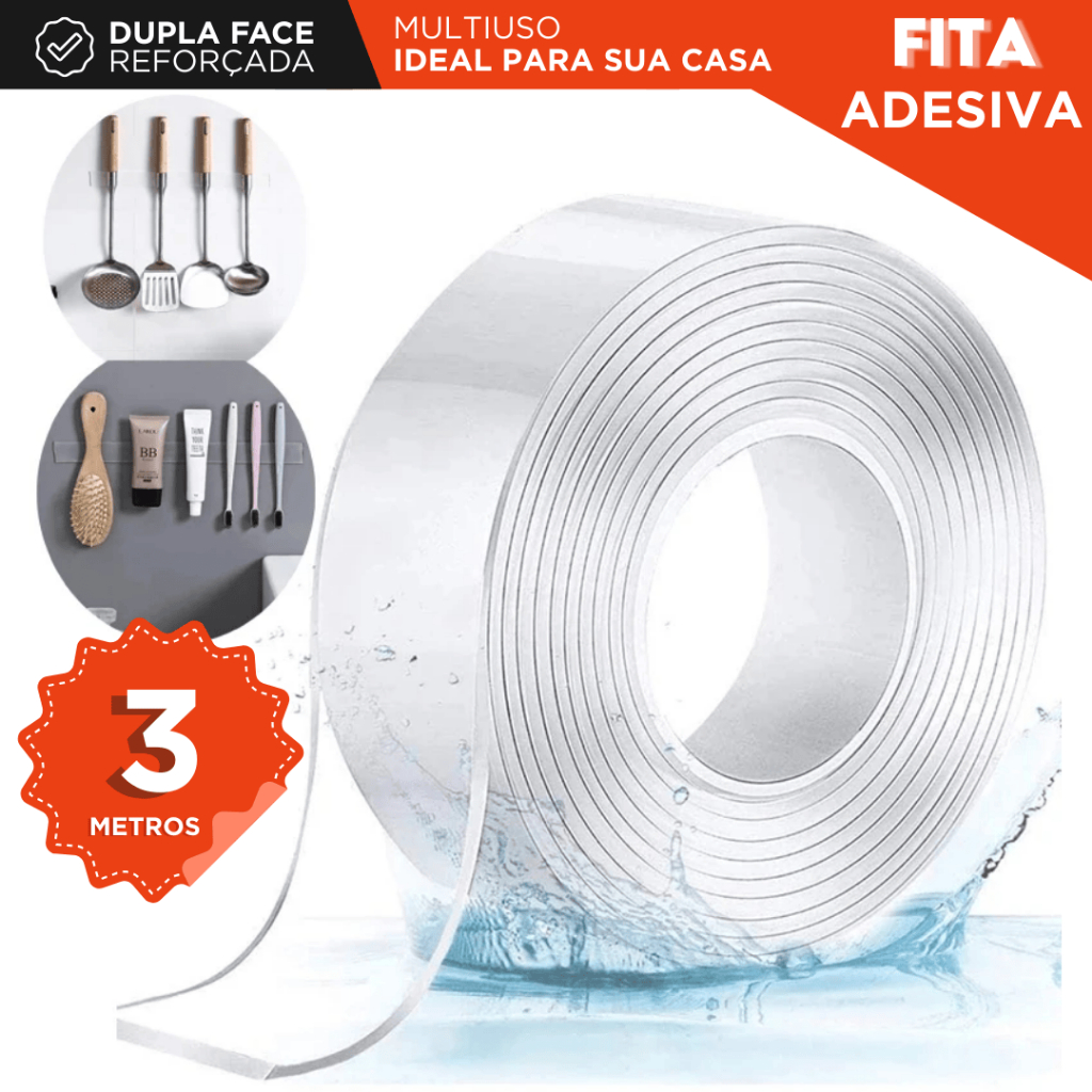 Fita Dupla Face Extra Forte Transparente NanoGel Silicone Mágica Adesiva - 3 Metros - Nybc