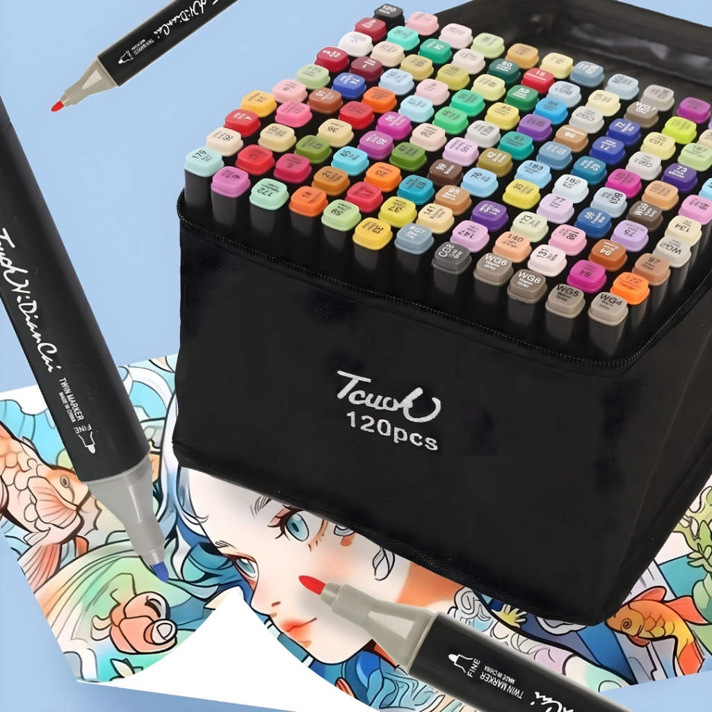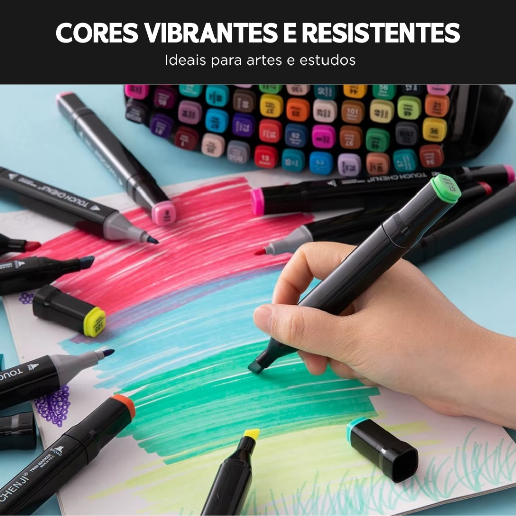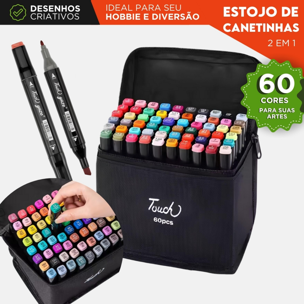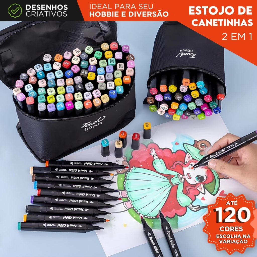 Canetas Marcadoras Ponta Dupla Touch 120 Cores com Estojo Profissional para Desenho e Pintura - NY