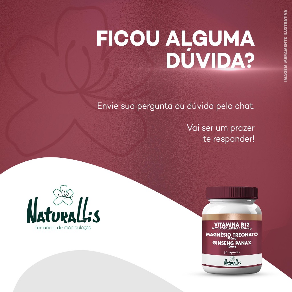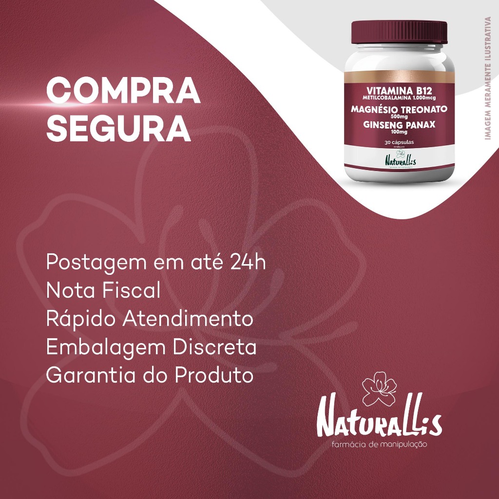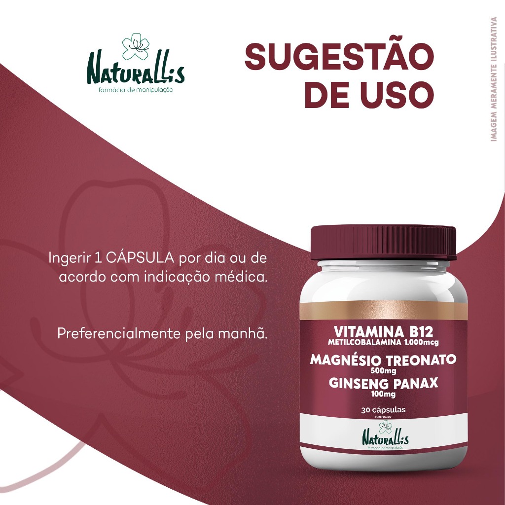 Vitamina B12 Metilcobalamina 1.000mcg C/ Magnésio Treonato 500mg e Ginseng Panax 100mg - 30cp