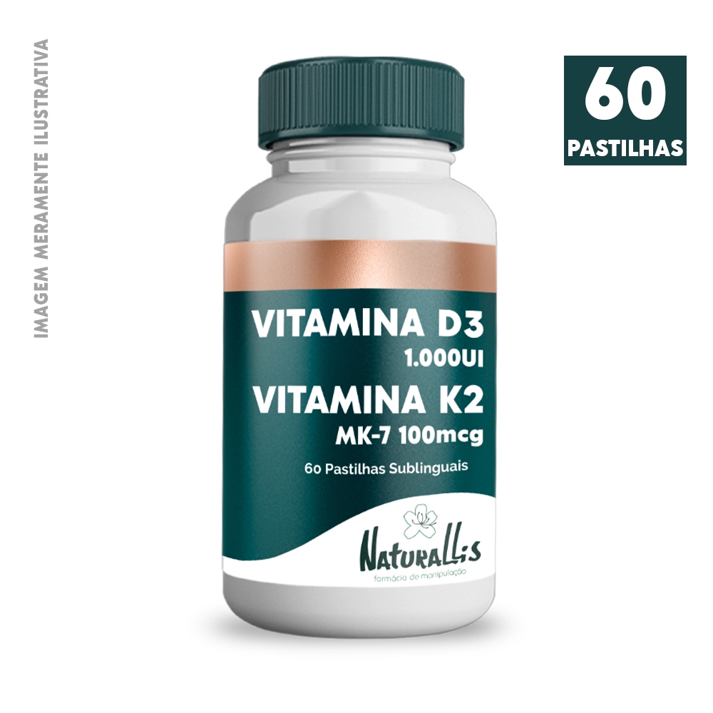 Vitamina D3 1.000UI C/ Vitamina K2 MK-7 100mcg - 60 ou 120 Pastilhas Sublingual - Naturallis