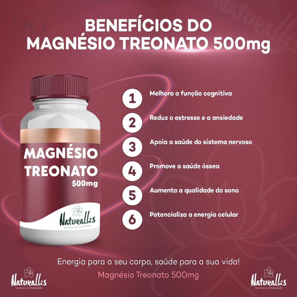 Magnésio Treonato 500mg - 60 ou 120 cápsulas