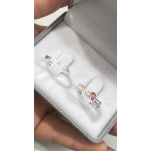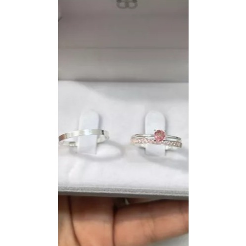 Par Alianças Compromisso Rosa Claro - Prata 950 + Solitário