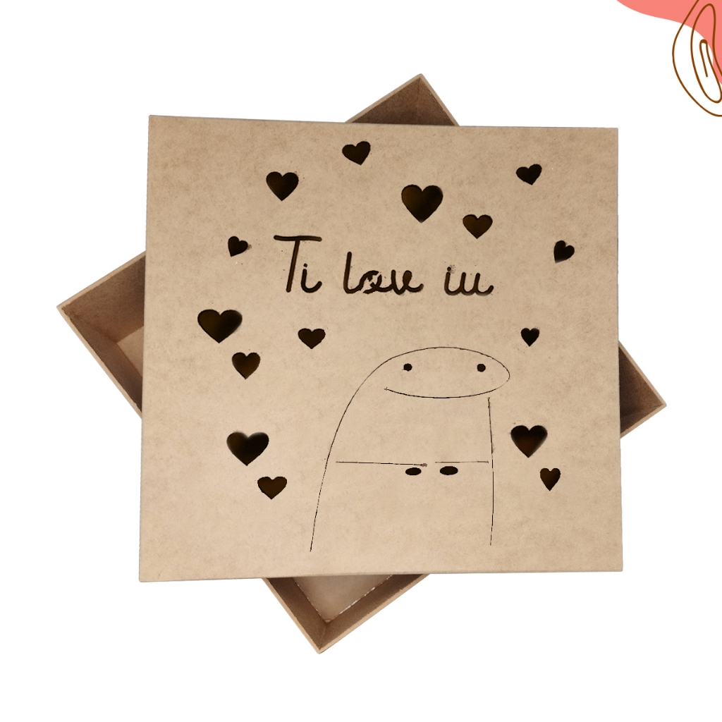 Caixa 30x30x10 Bento Declaração Ti Louve Iu Embalagem Divertida Namorados em MDF