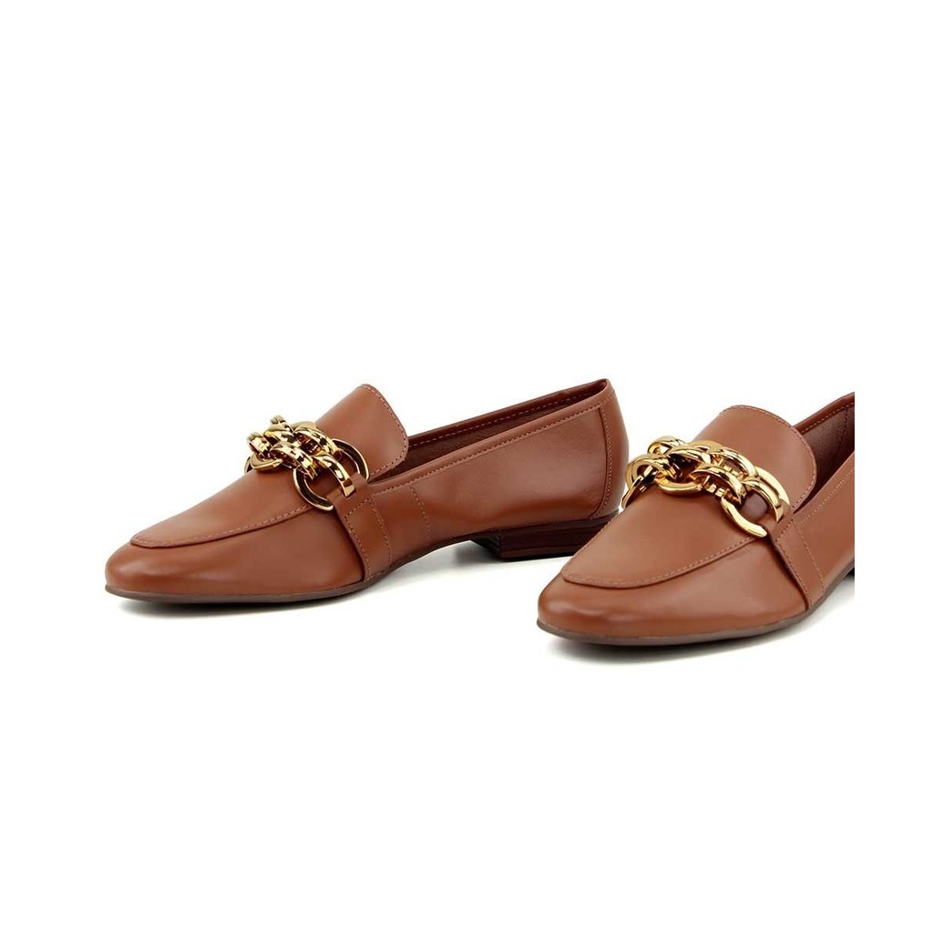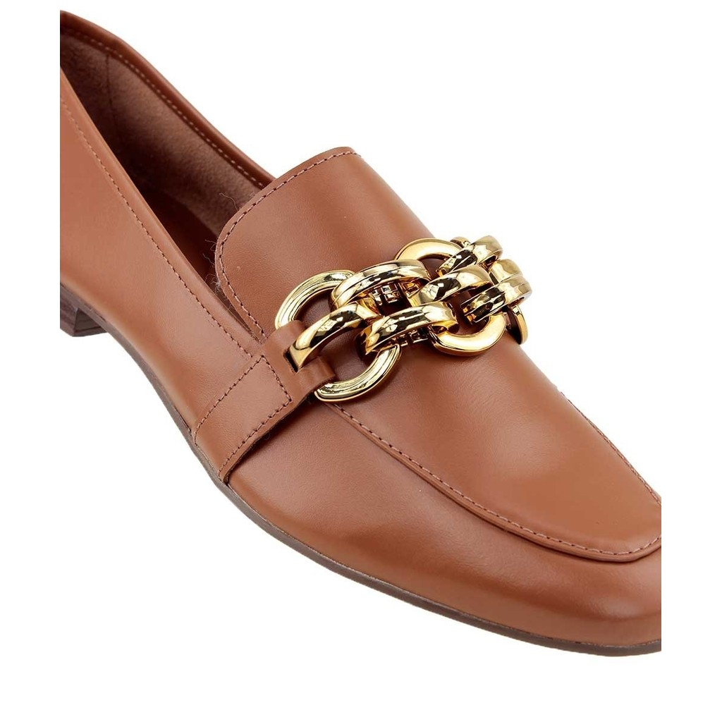 Mocassim Loafer Loucos E Santos Detalhe Adereço Caramelo