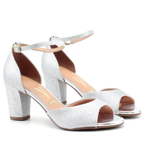 Sandália Vizzano Salto Bloco Glitter Prata 6262-406