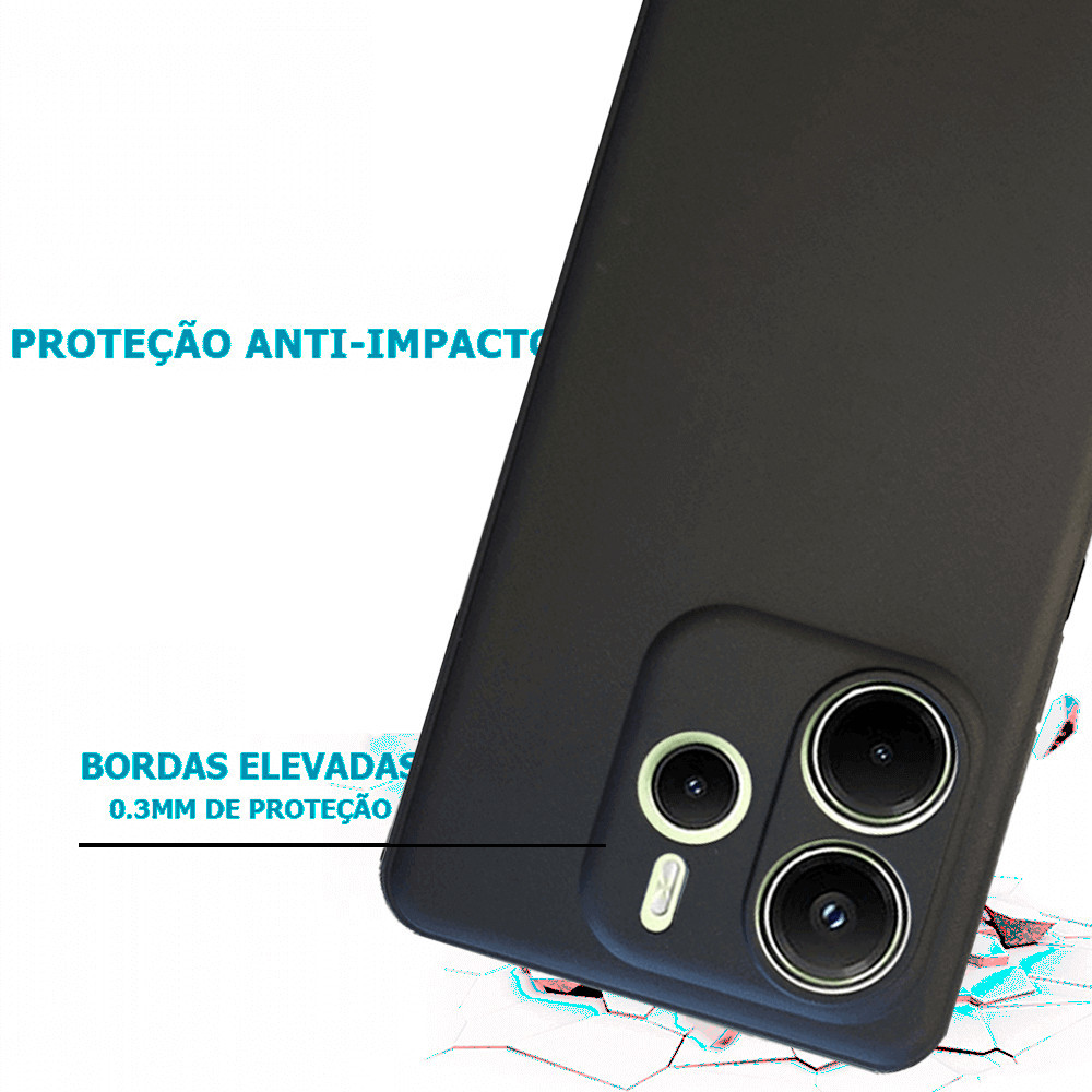Kit - Capa Capinha Case + Película - Xiaomi Redmi Note 14 4G Silicone Aveludado Protetor de Câmera
