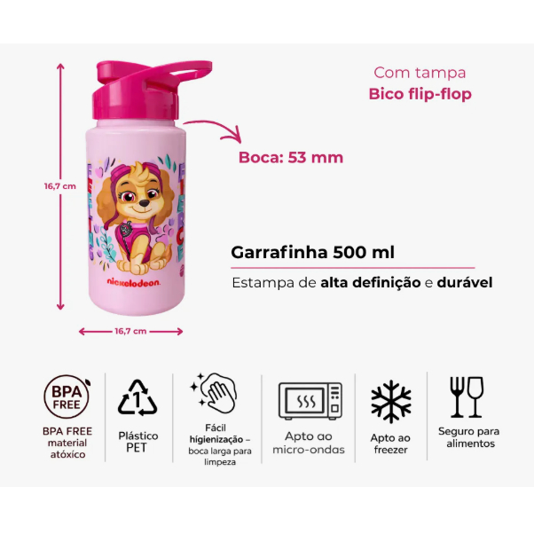 Squeeze Garrafinha de Água Patrulha Canina Chase Skye Plástico 500ml Lancheira Garrafa BPA FREE