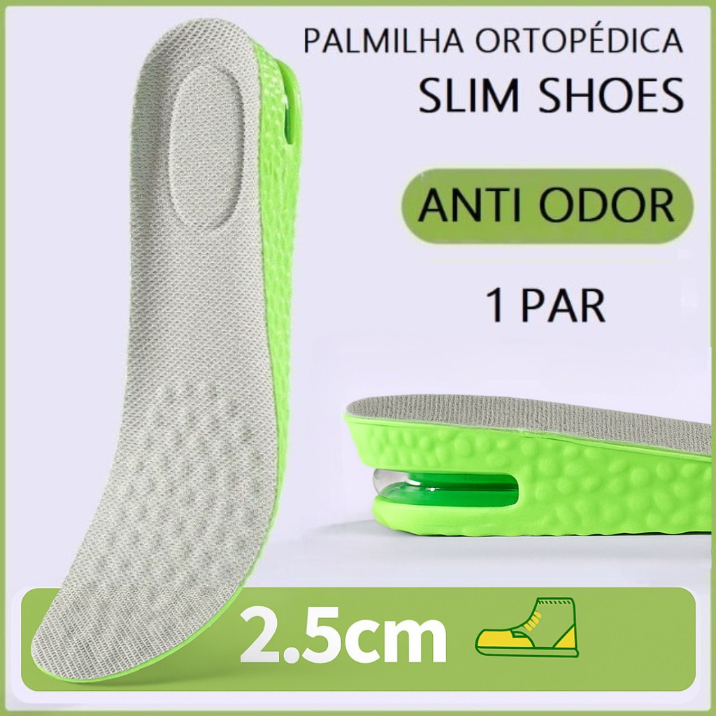Palmilha Altura Verde Espuma Conforto Gel Elevador Anti Odor Eleva Altura Invisível