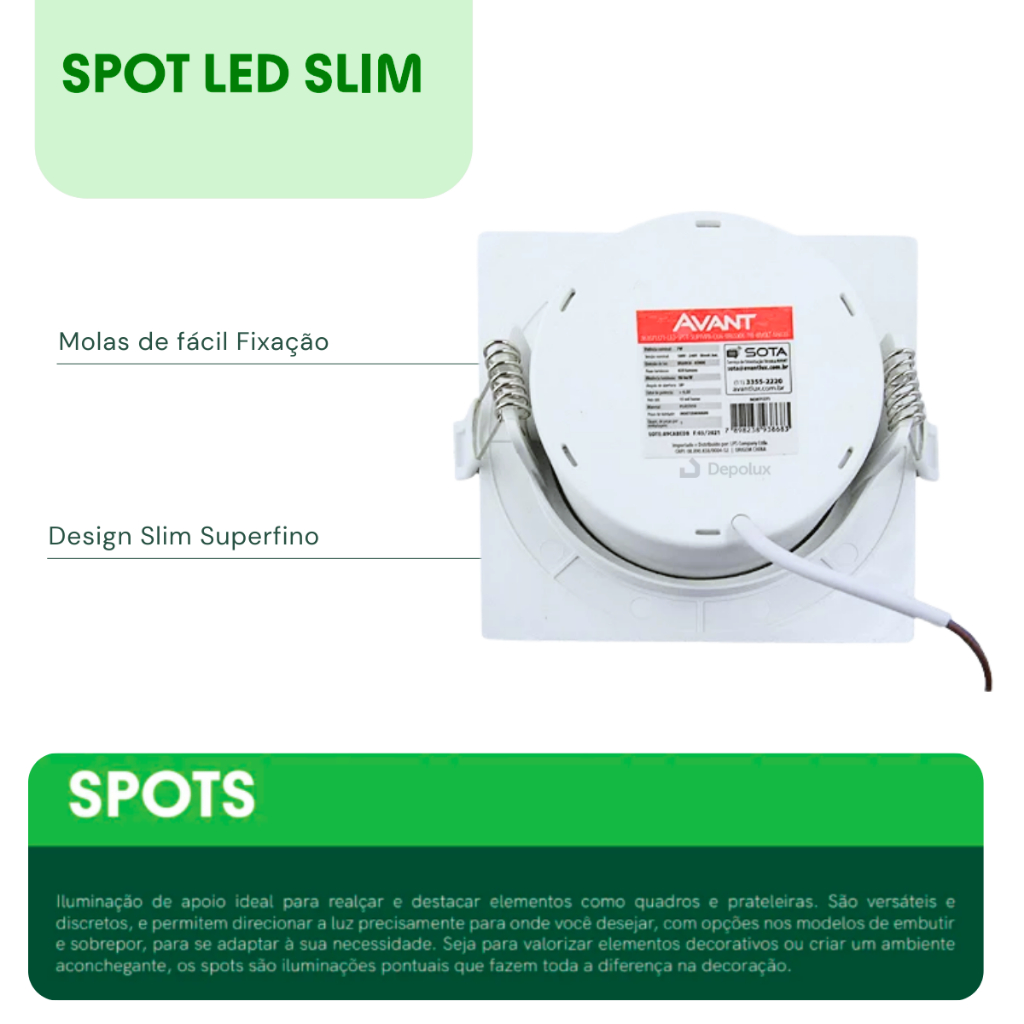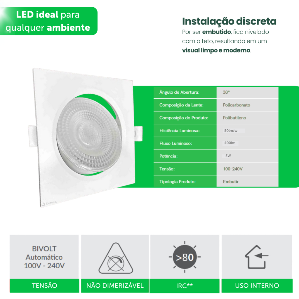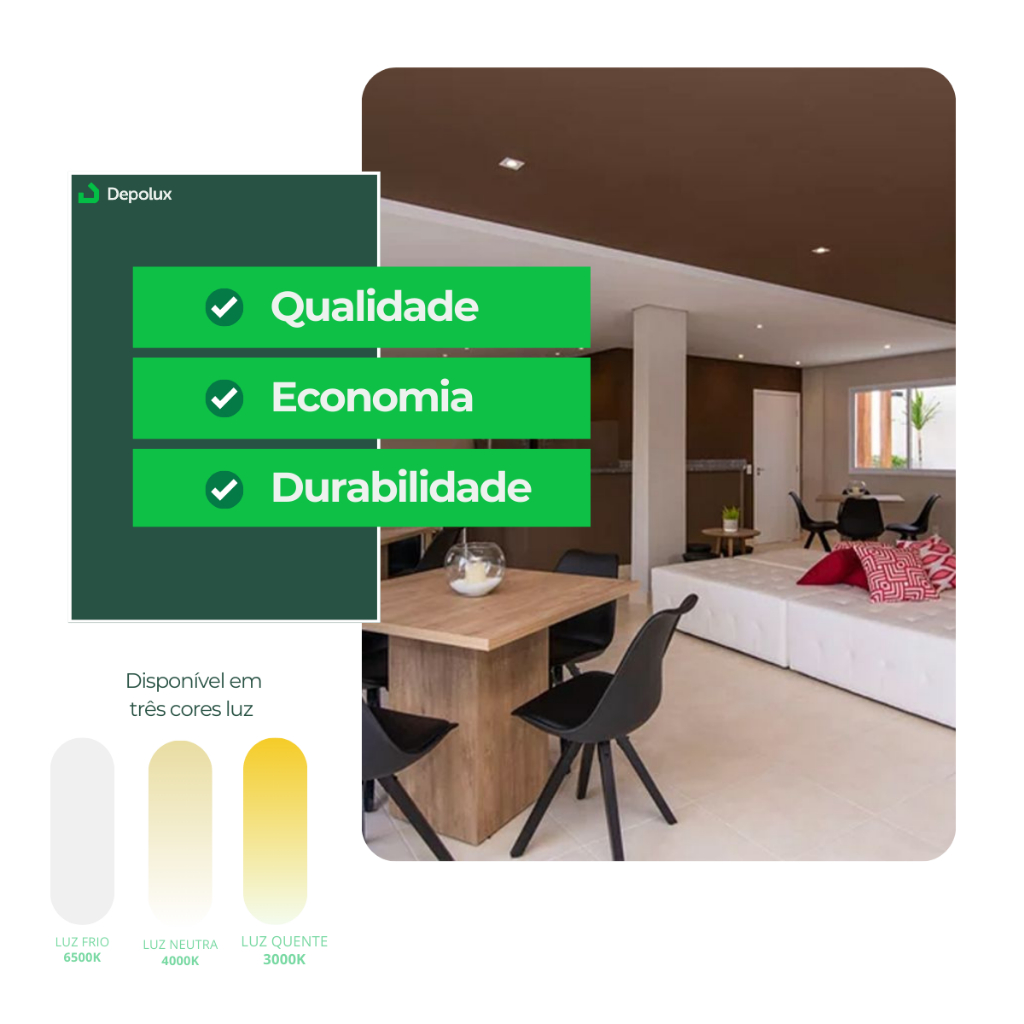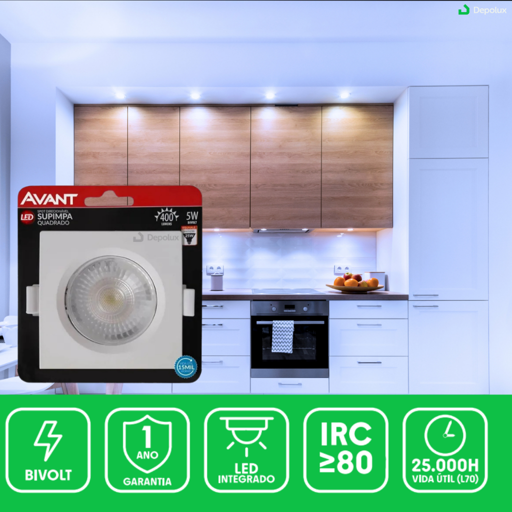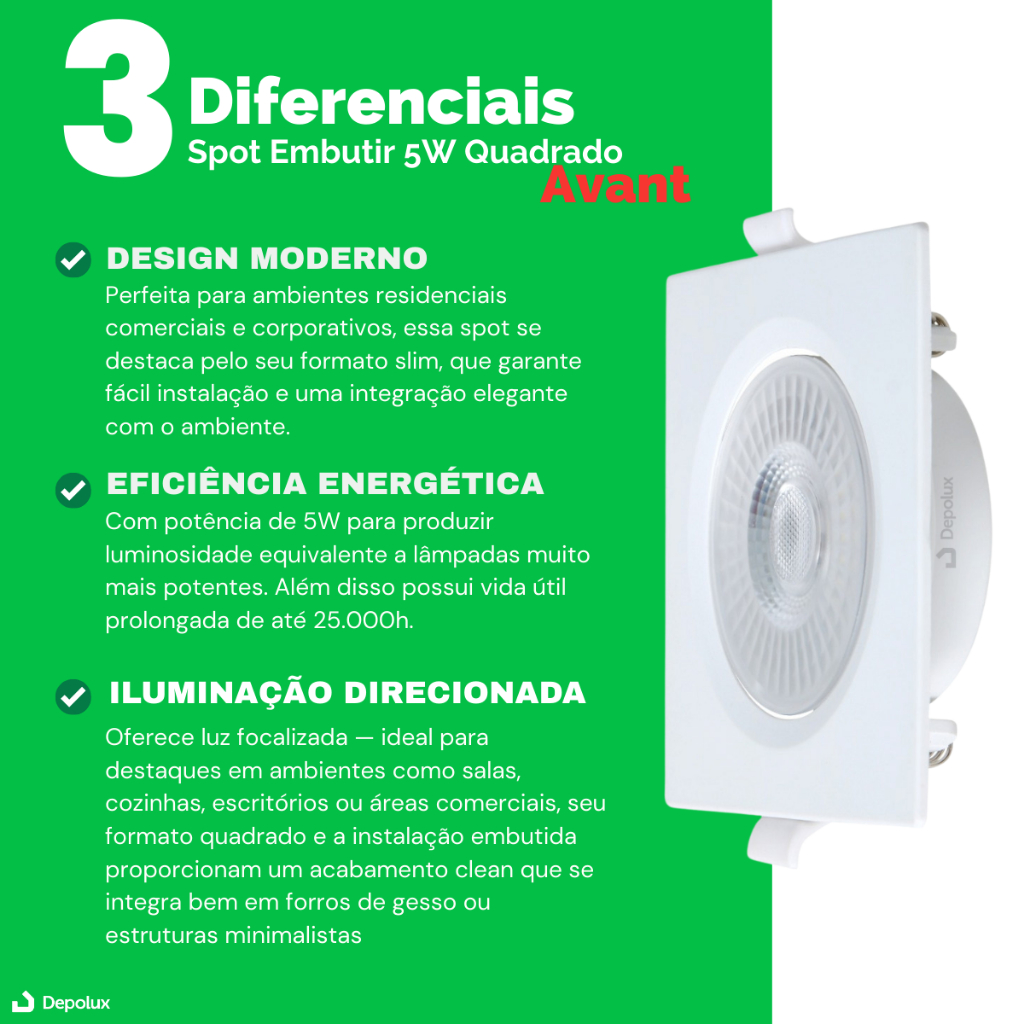 Kit 3 Spot Led Embutir 5w Quadrado/Redondo 9cm Luminária Teto Gesso Sanca Forro Dicroica MR16 Avant