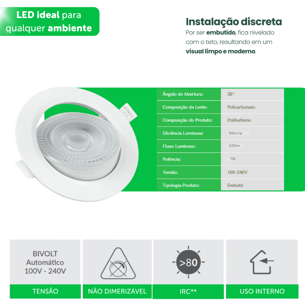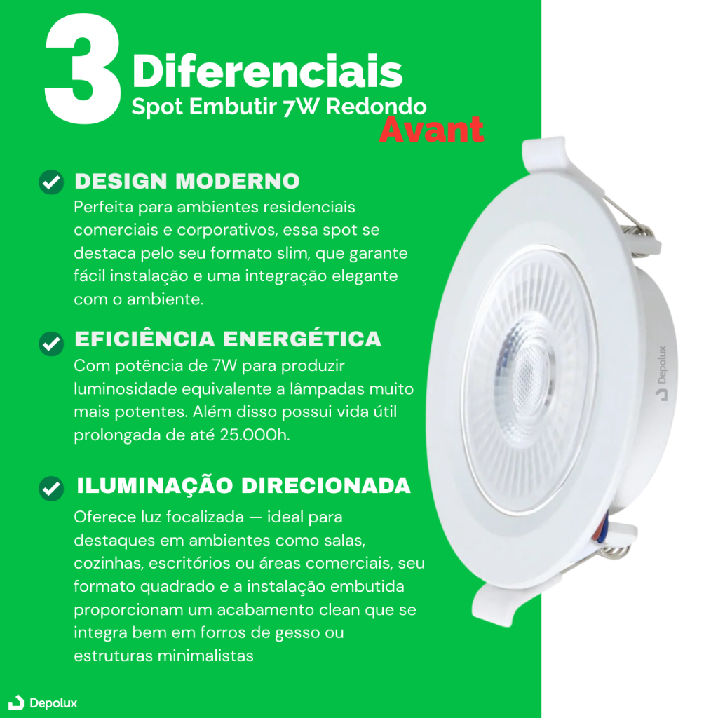 Kit 10 Spot Led Embutir 7w Redondo Luminária Teto Direcionável 11cm Forro Gesso Sanca 110/220v