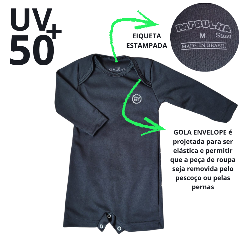 Macacão Curto Bebê Manga Longa Romper Macaquinho com Proteção Solar Uv50+ Verão Praia Piscina