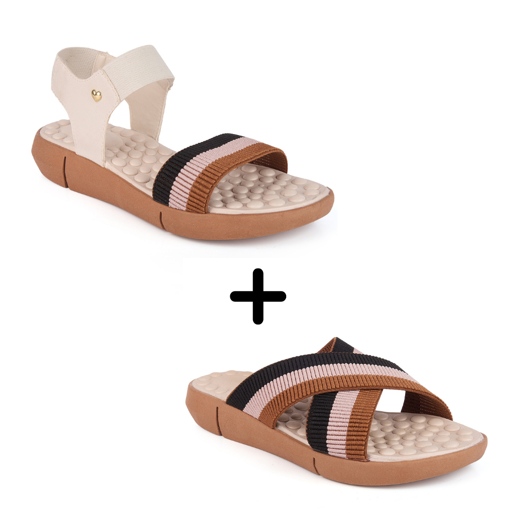 Kit 2 Pares Chinelo + Sandália Feminina Ortopédica Palmilha Massageadora Casual Leve Macio Confortável Sola de Eva