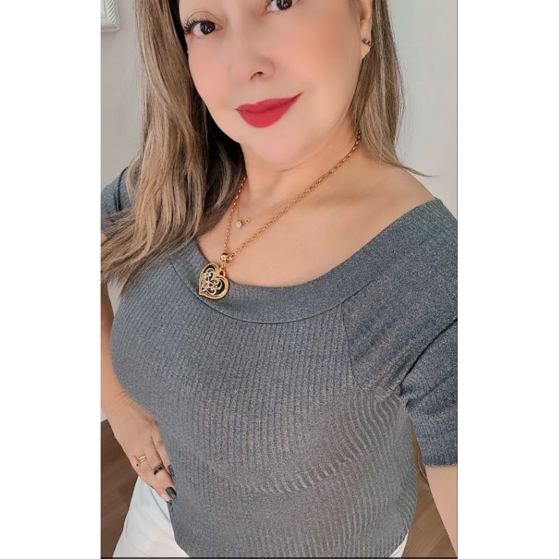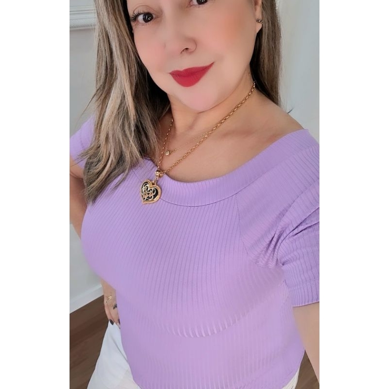 Blusa ombro a ombro manga curta, ciganinha malha canelada