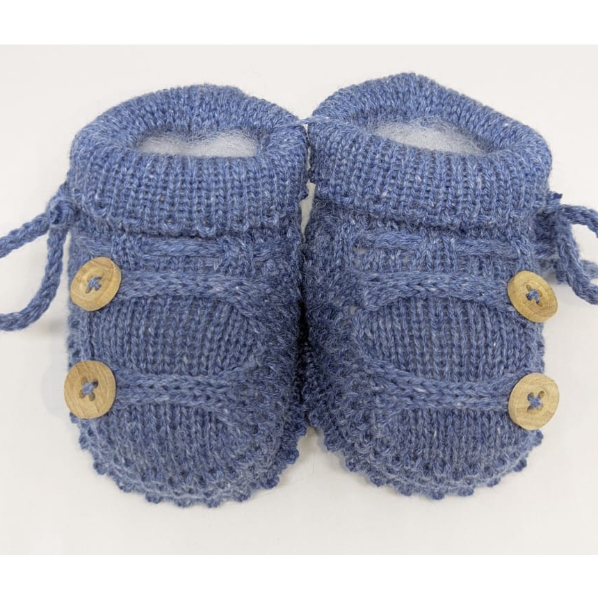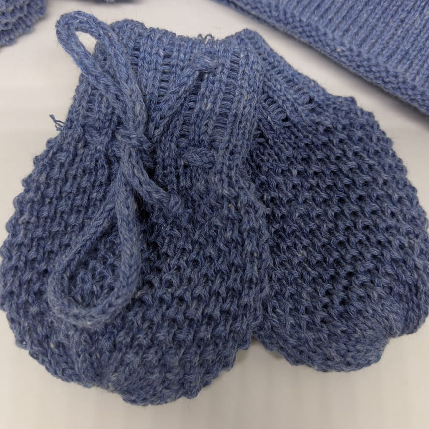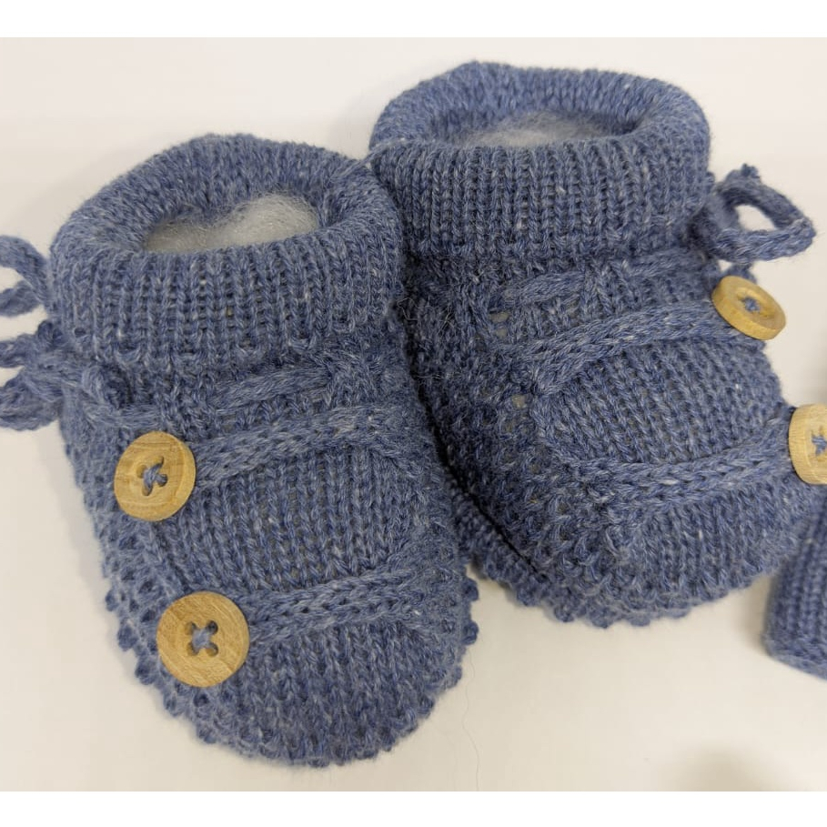 Kit Touca/Gorro Luva e Sapatinho/Botinha Jeans 2 B bebê RN até 2 Meses em Tricô