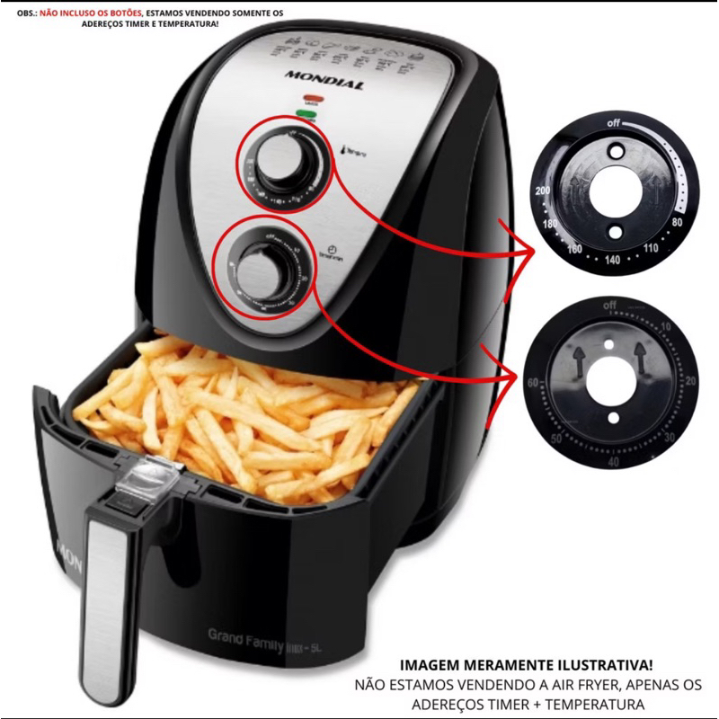 KIT ADEREÇO TIMER+TEMPERATURA PRETO AIR FRYER MONDIAL AFN40 AFN50 AFN51