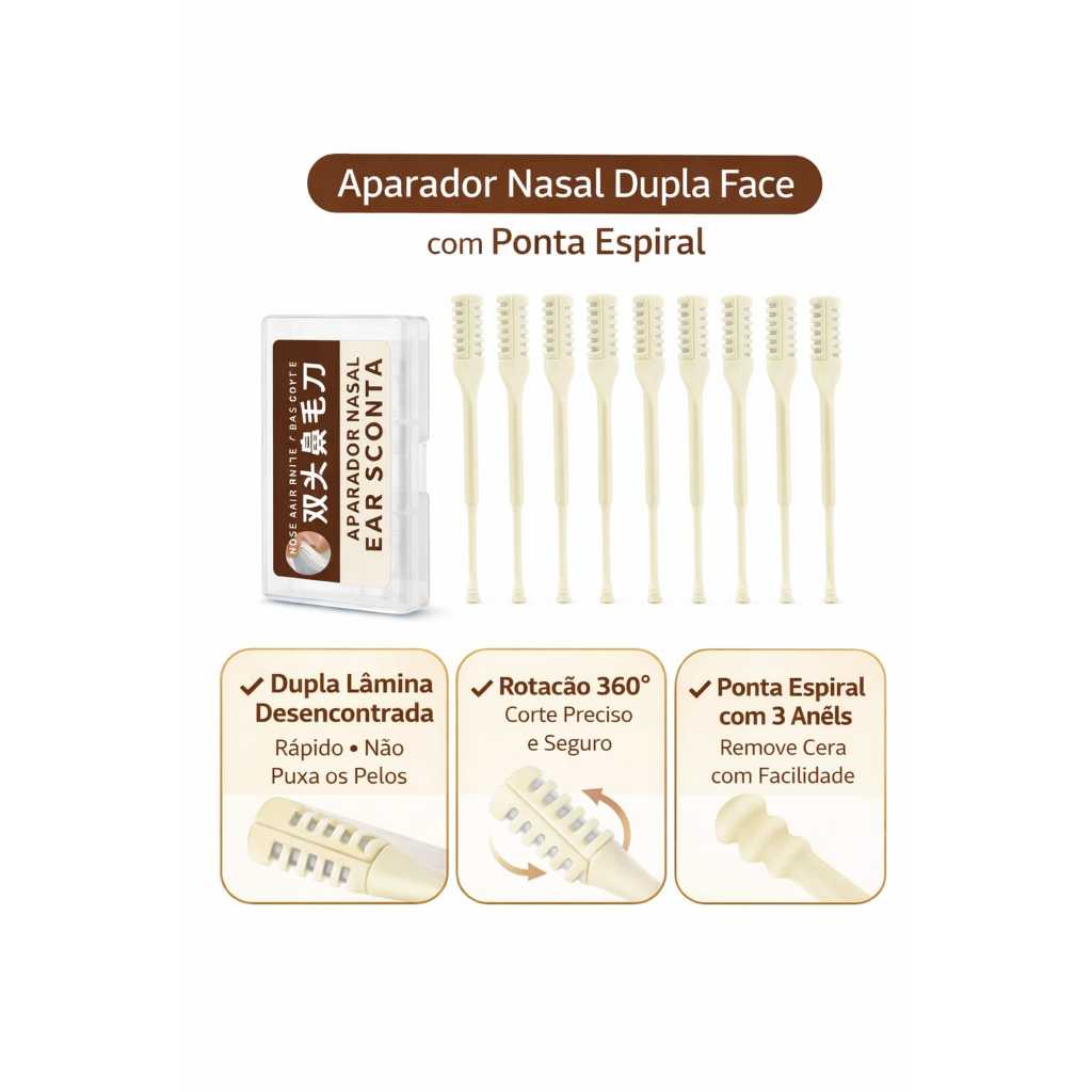 Kit com 5 Aparador de Pelo de Nariz com Cabeça Dupla para Aplicação Versátil