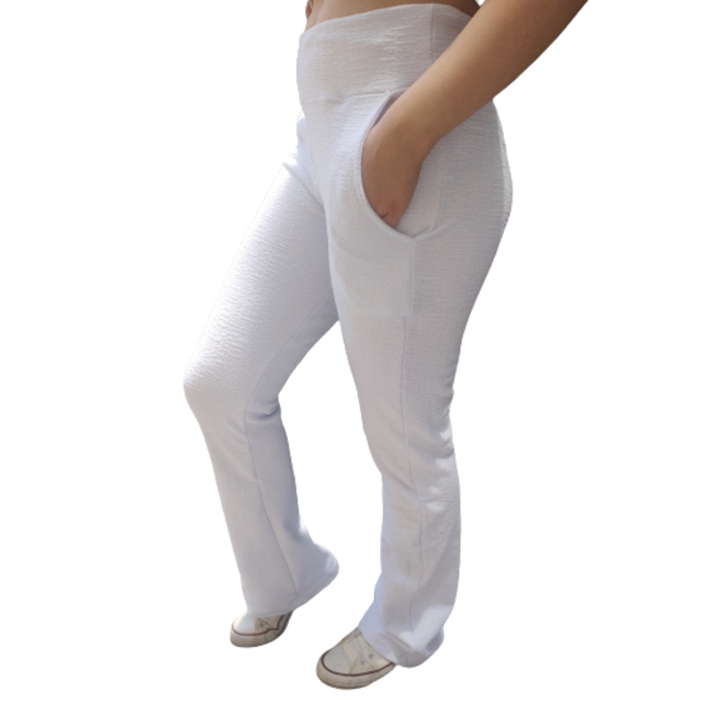 Calça Bailarina Flare Branca SEM Bolso Grossa Cós Alto Enfermagem