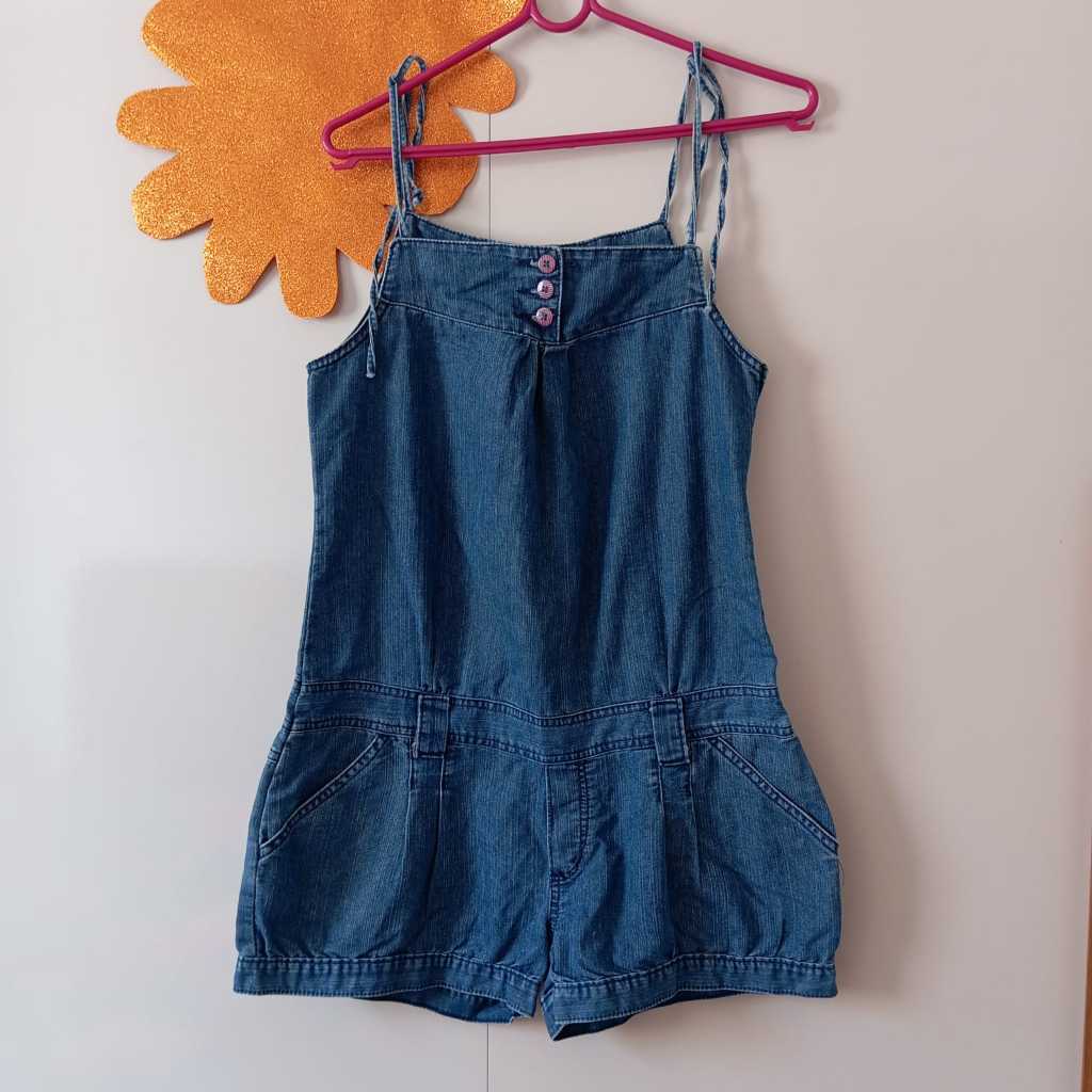 Macaquinho jeans feminino - Jinglers