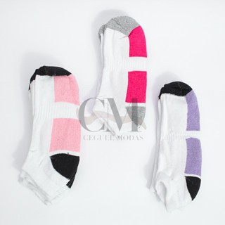Kit com 18 Pares Meia Feminina Soquete 100% Algodão colorida