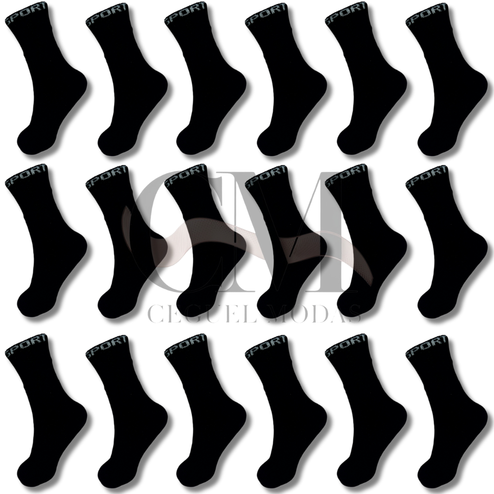 kits de 3 a 24 pares meia SPORT PRETA 100% algodão grossa alta qualidade cano alto