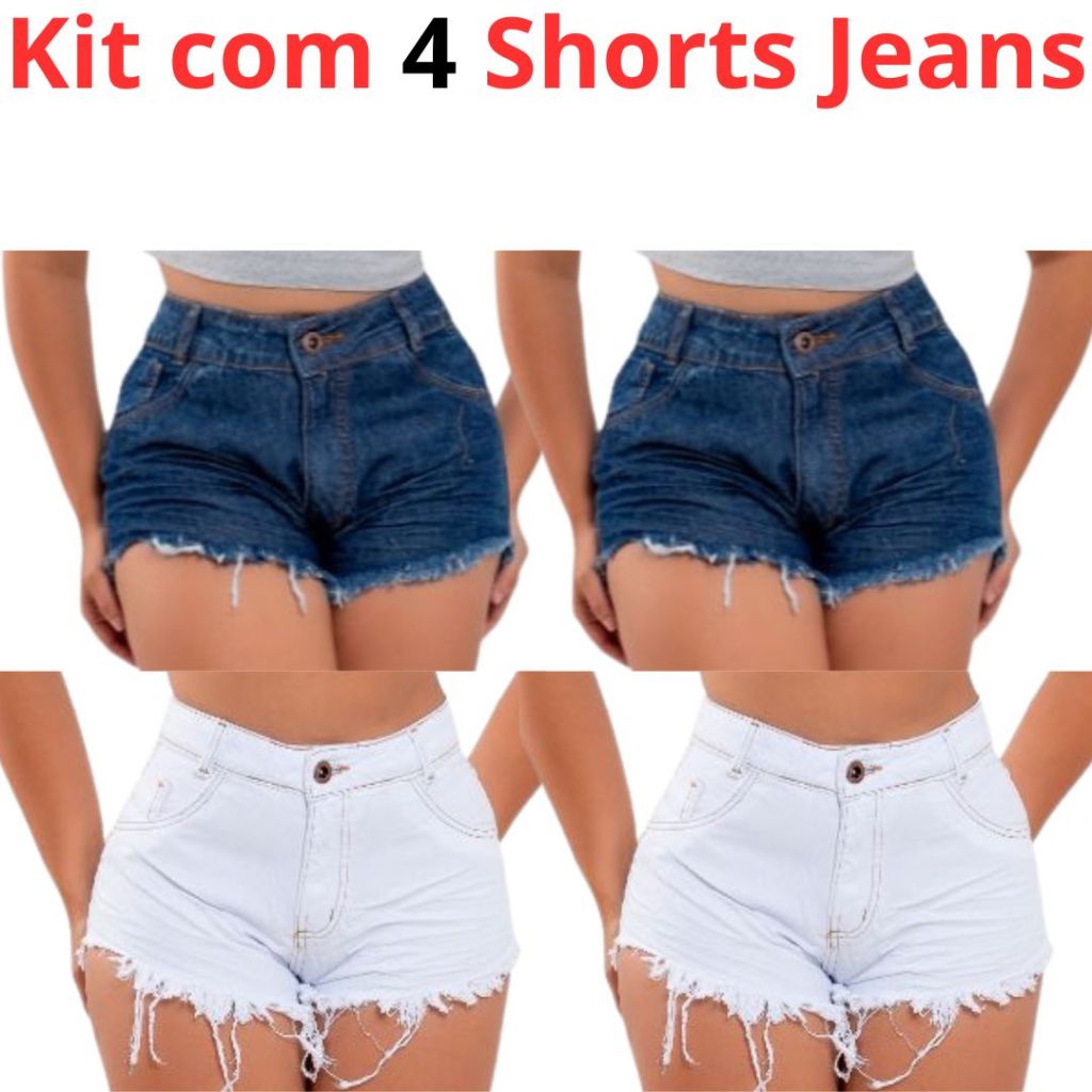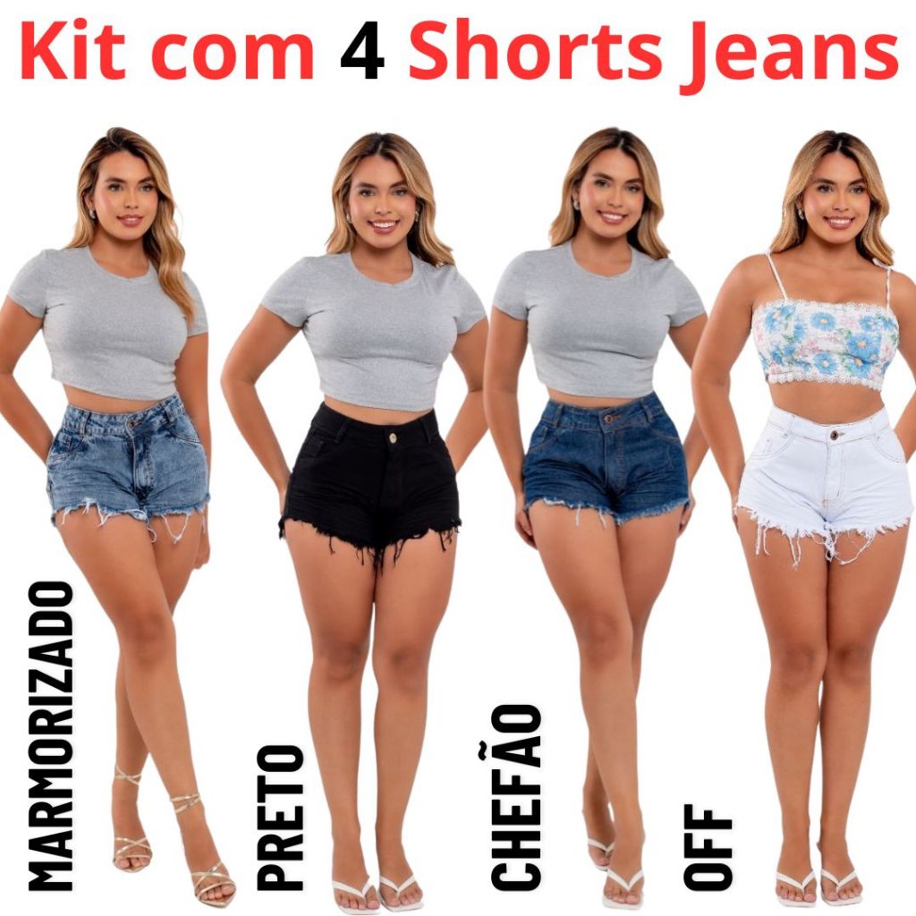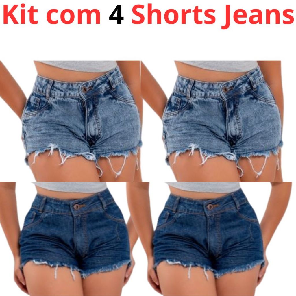 Kit 4 Shorts Jeans Feminino Cintura Alta