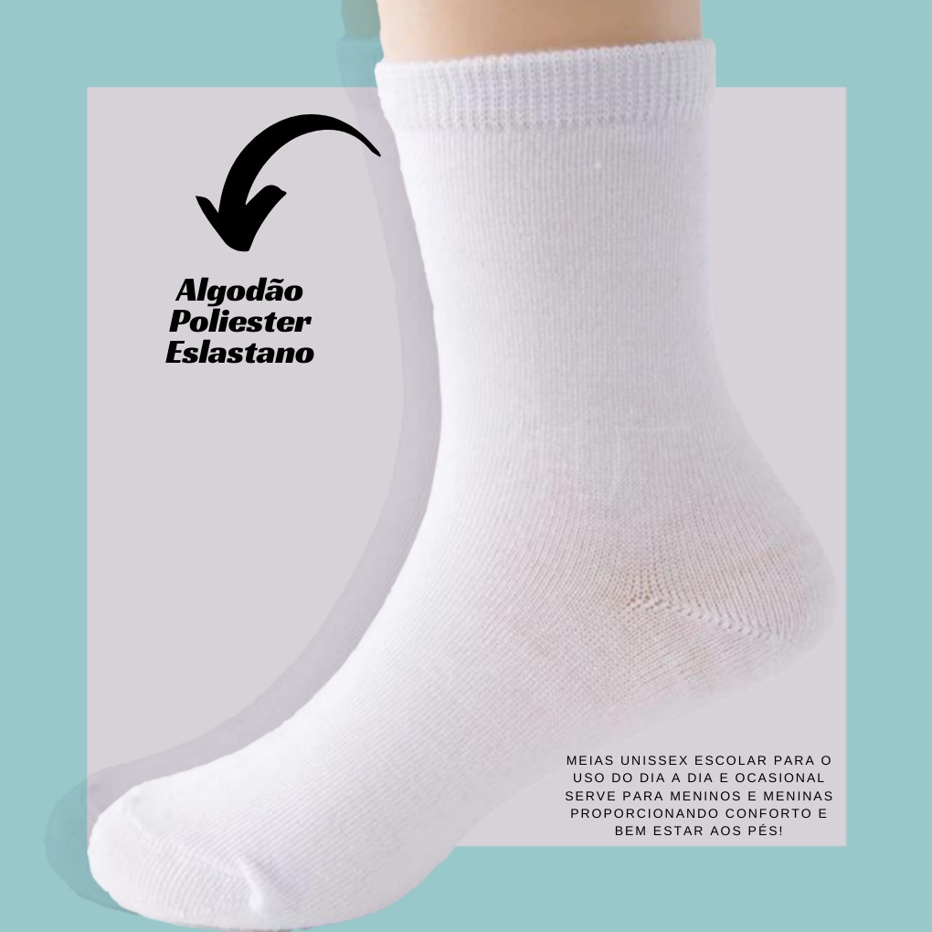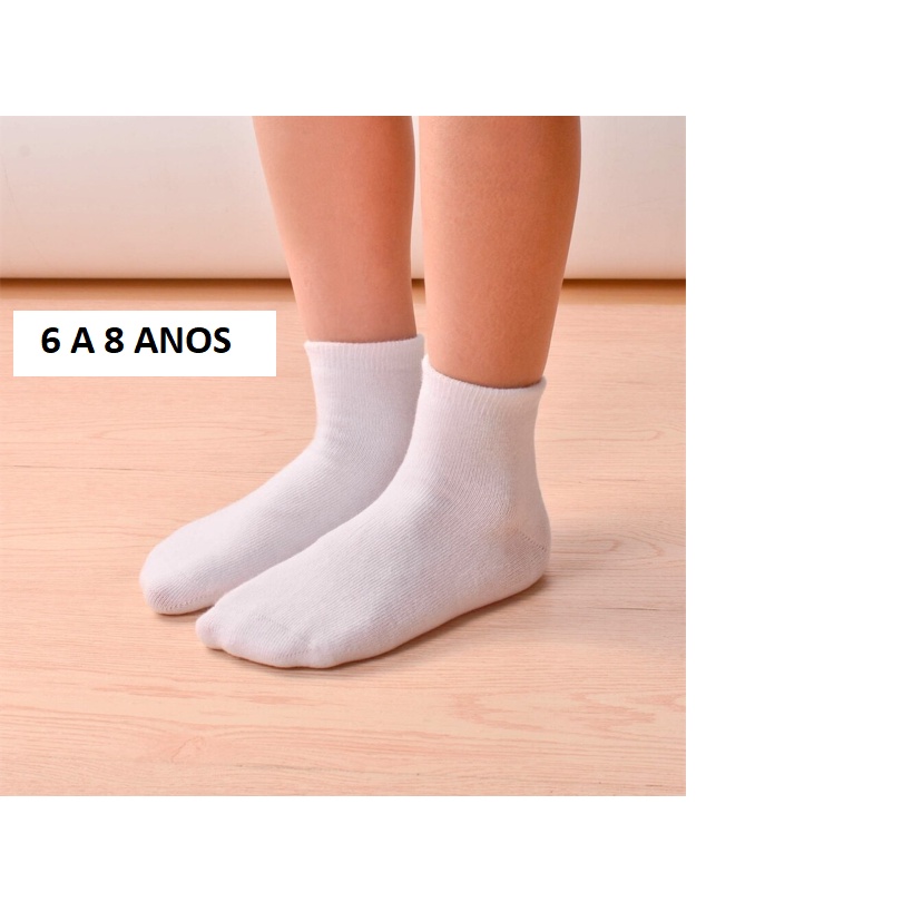 Kit 6 Pares Meia Infantil Branca Escolar Menina Menino Juvenil Conforto Cano Longo