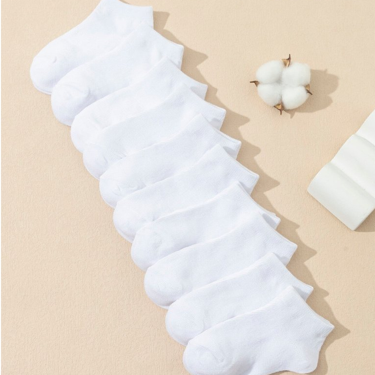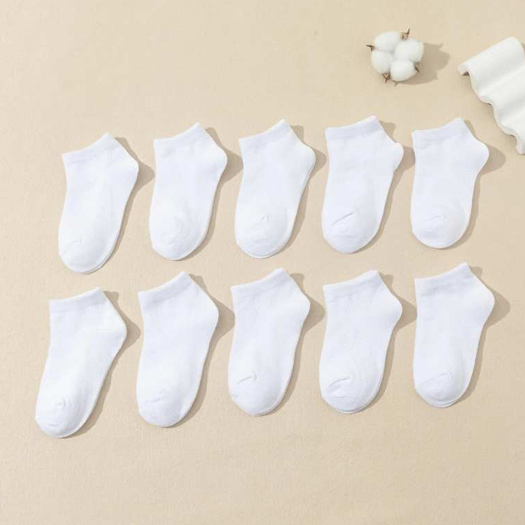 Kit 9 Pares Meia Infantil Escolar Cano Curto Branca Algodão Moda Conforto Kids