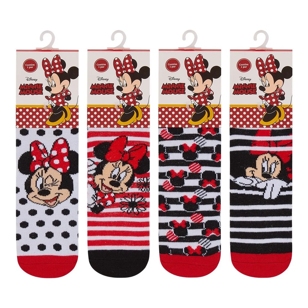 Kit 3 Pares Meia Infantil Disney Personagens Menina Cano Médio Minnie Princesas
