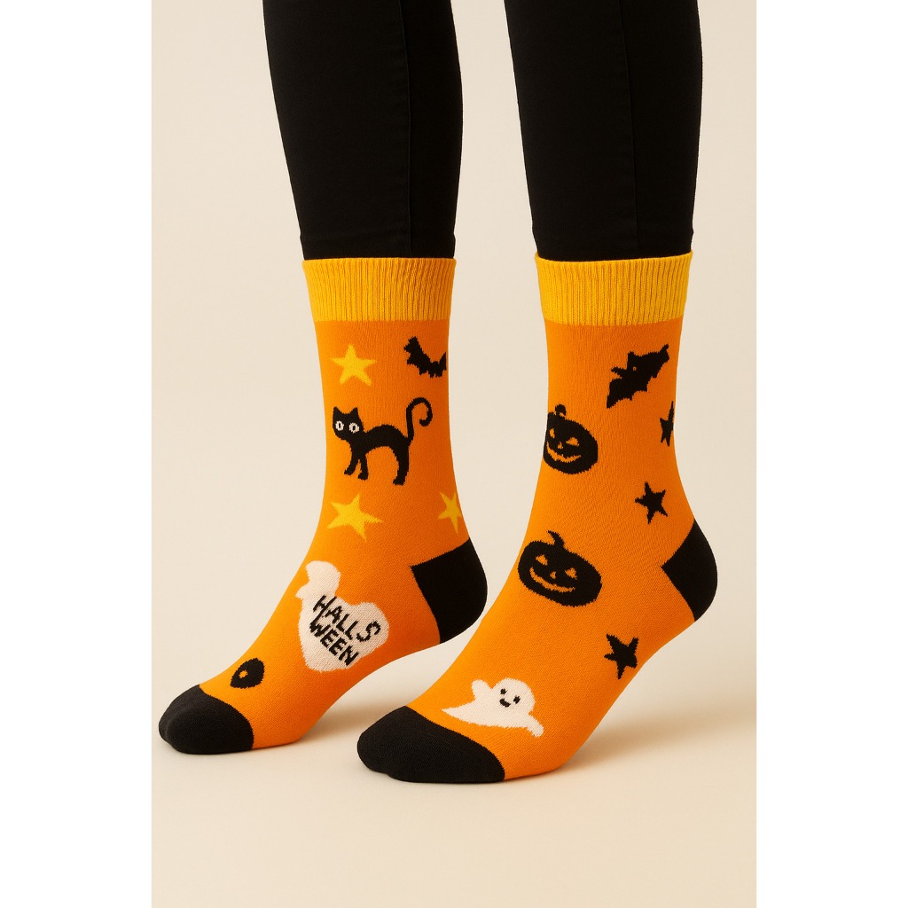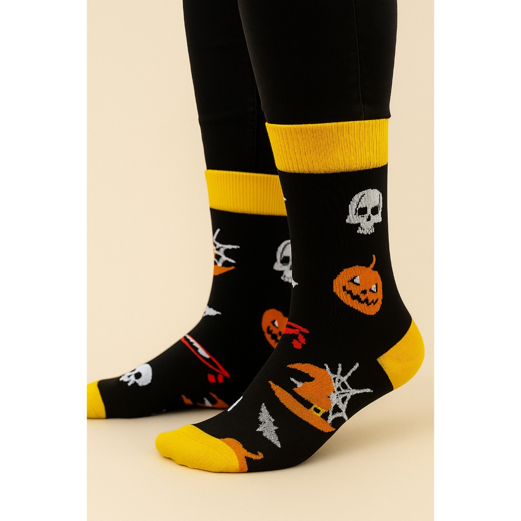 Kit 2 Pares Meia Halloween Divertidas Adulto Juvenil Meia Cano Longo Dias Das Bruxas Estampada