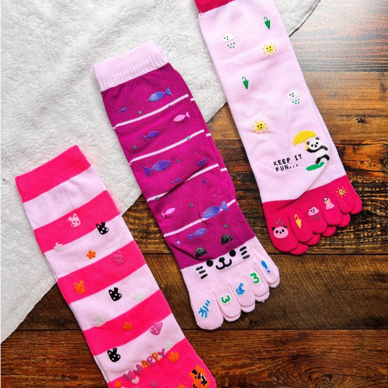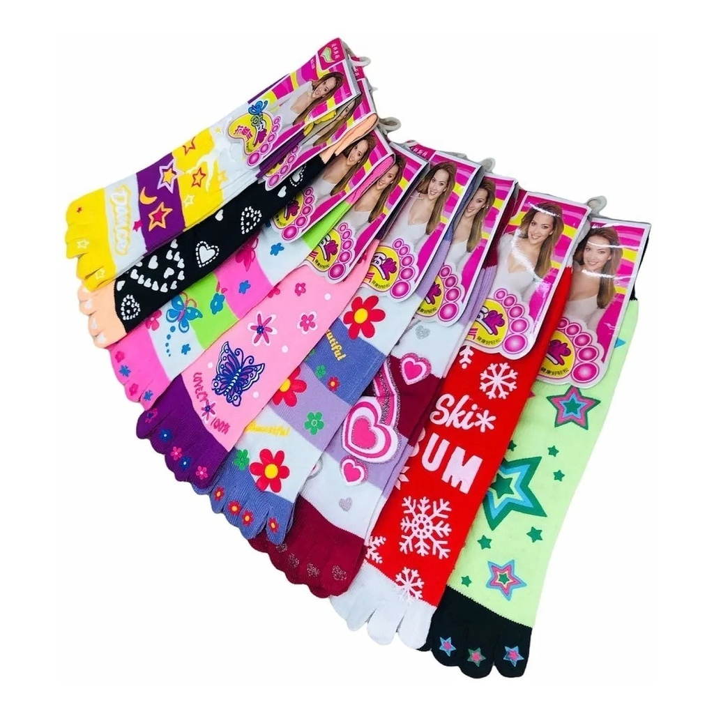 Kit 3 Pares ou 1 Par Meia Dedinho Moda Infantil Com Antiderrapante Menina Estampada Conforto