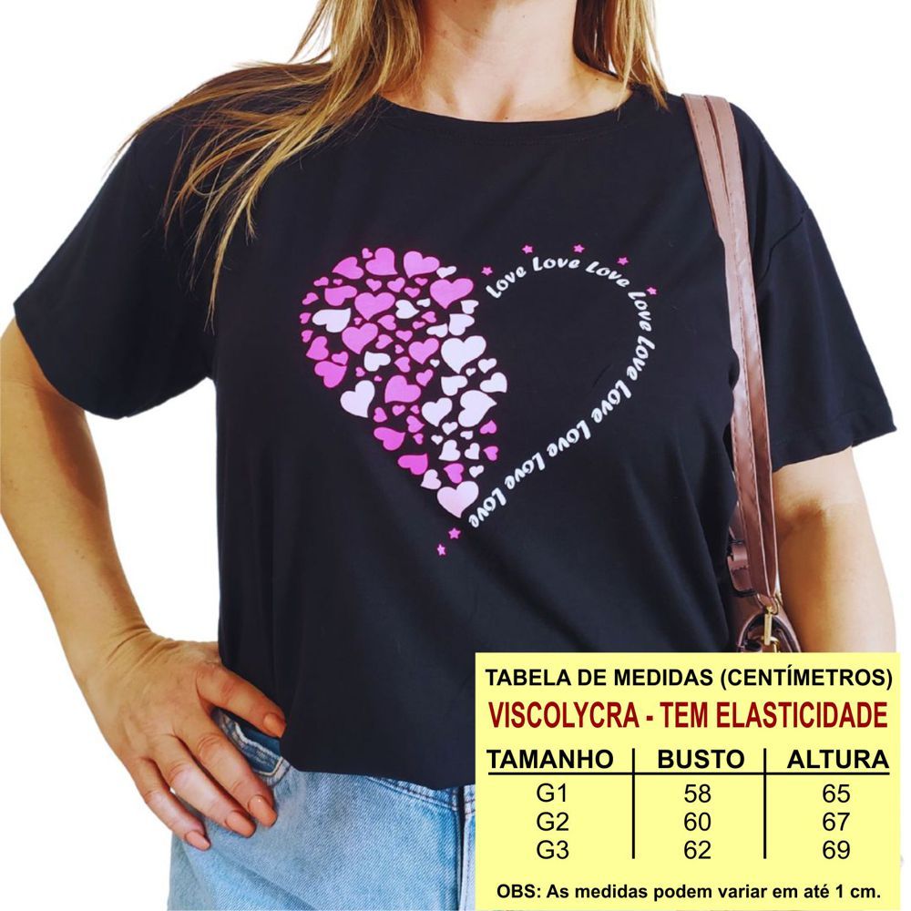 Blusa Feminina Plus Size Viscolycra Tshirt Feminina Plus T-shirt M AO G3 Babylook Feminina