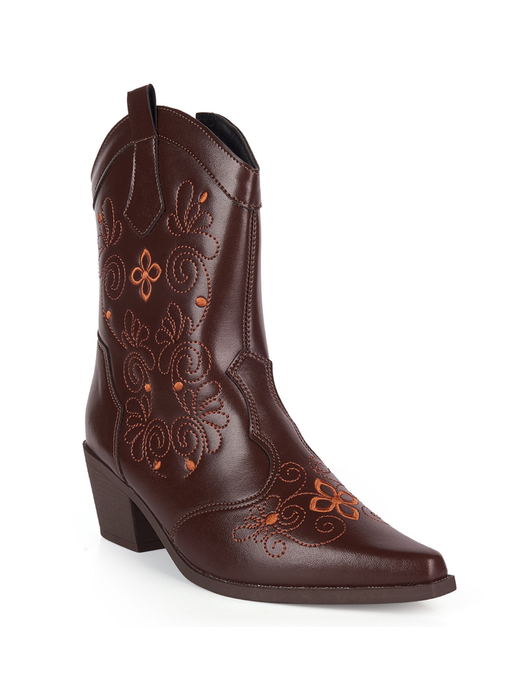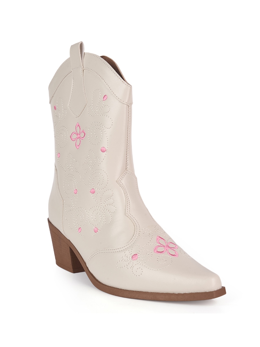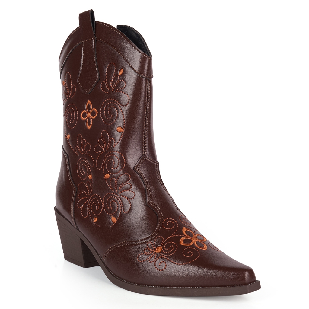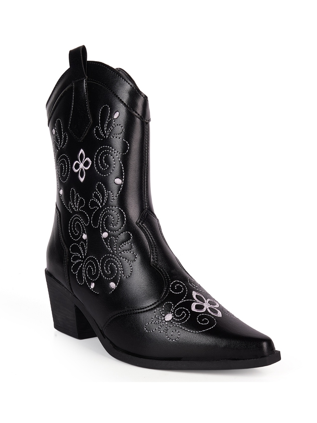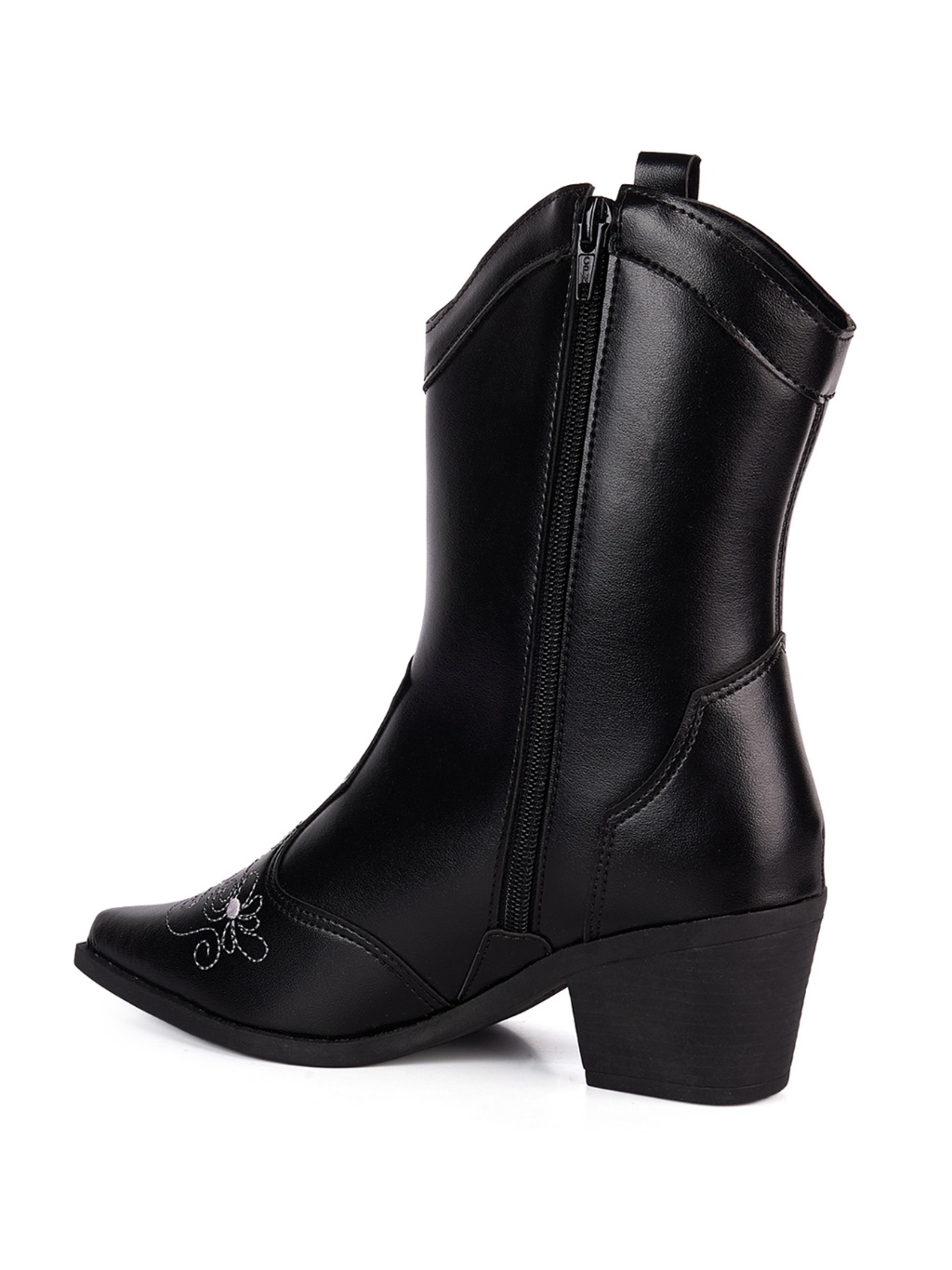 Bota Texana Feminina Western Bico Fino Quadrado Cano Curto Bordada Country Fashion Munita