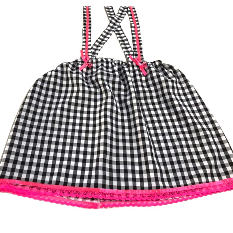 Saia com Suspensório Jardineira Festa Junina Adulto Alça Regulável