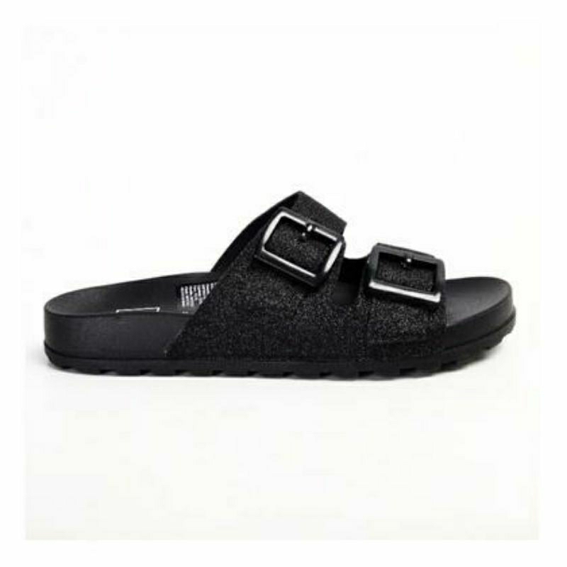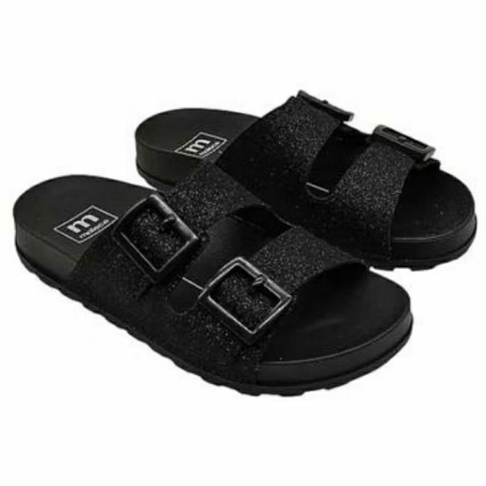 Sandália Papete Feminina Moleca Conforto Preto Gliter