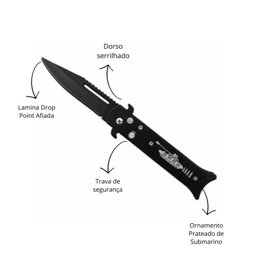 mini canivete preto c/ clip para bolso desenho submarino