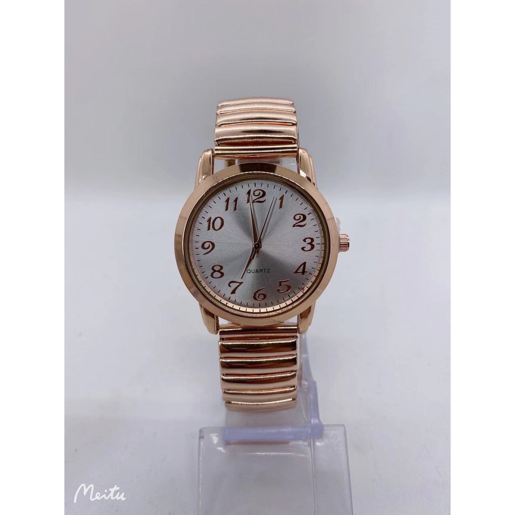 Relógio Feminino de pulso Quartz Pulseira Elástica analógico Redondo Dourado e Rose breto prata Moda Blogueira