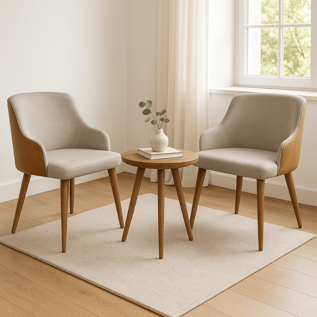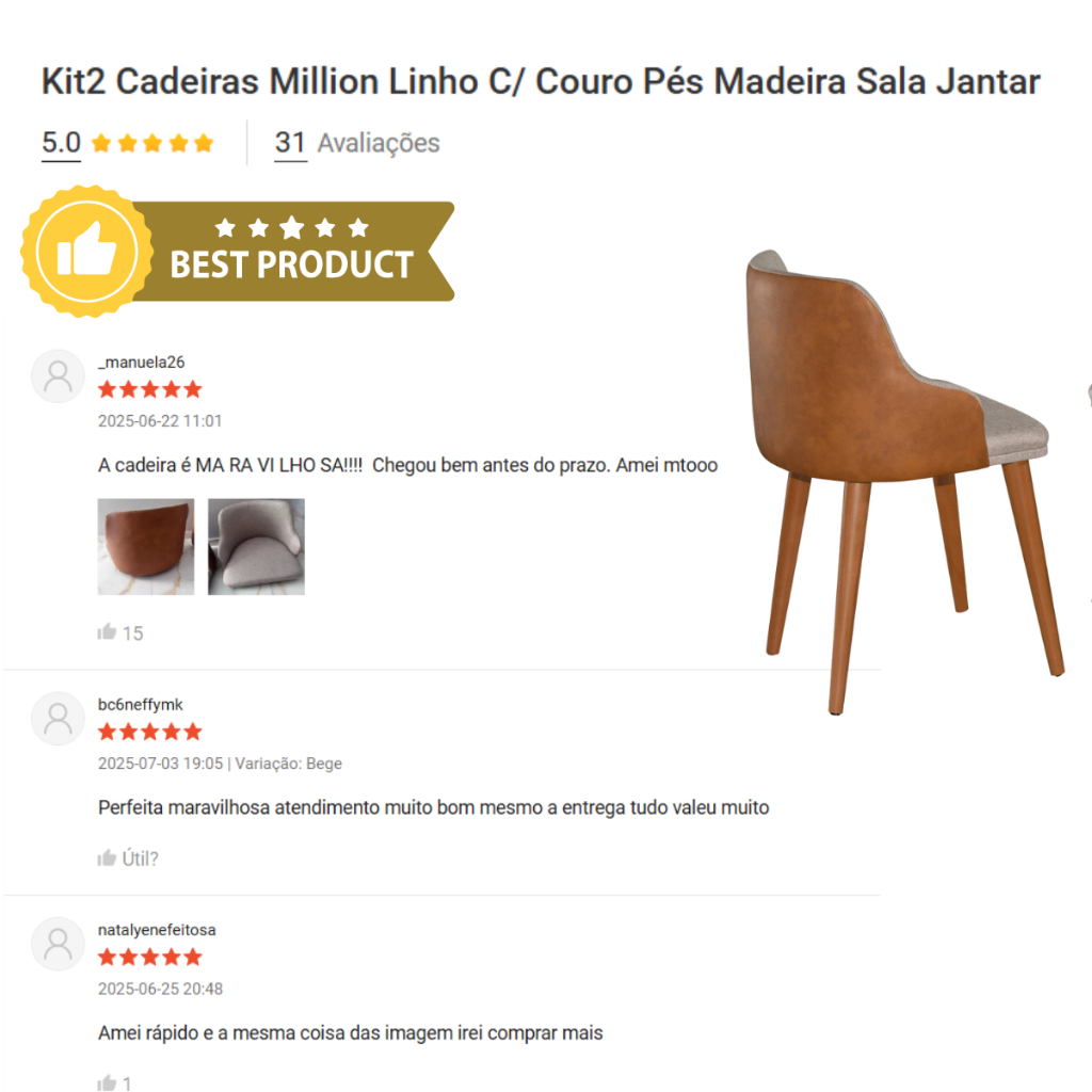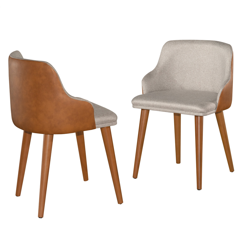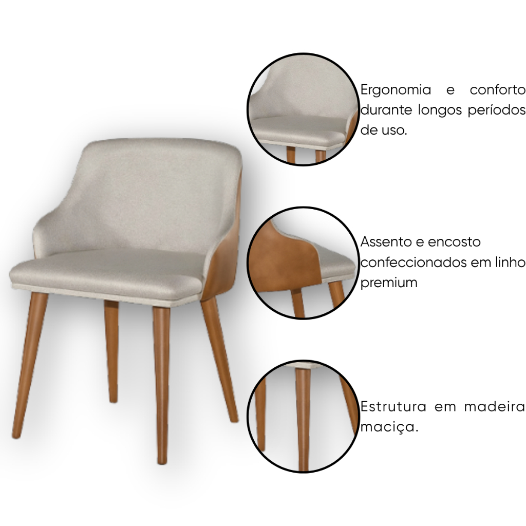 Kit 2 Banqueta Million Tecido Linho C/ Couro Pés Em Madeira