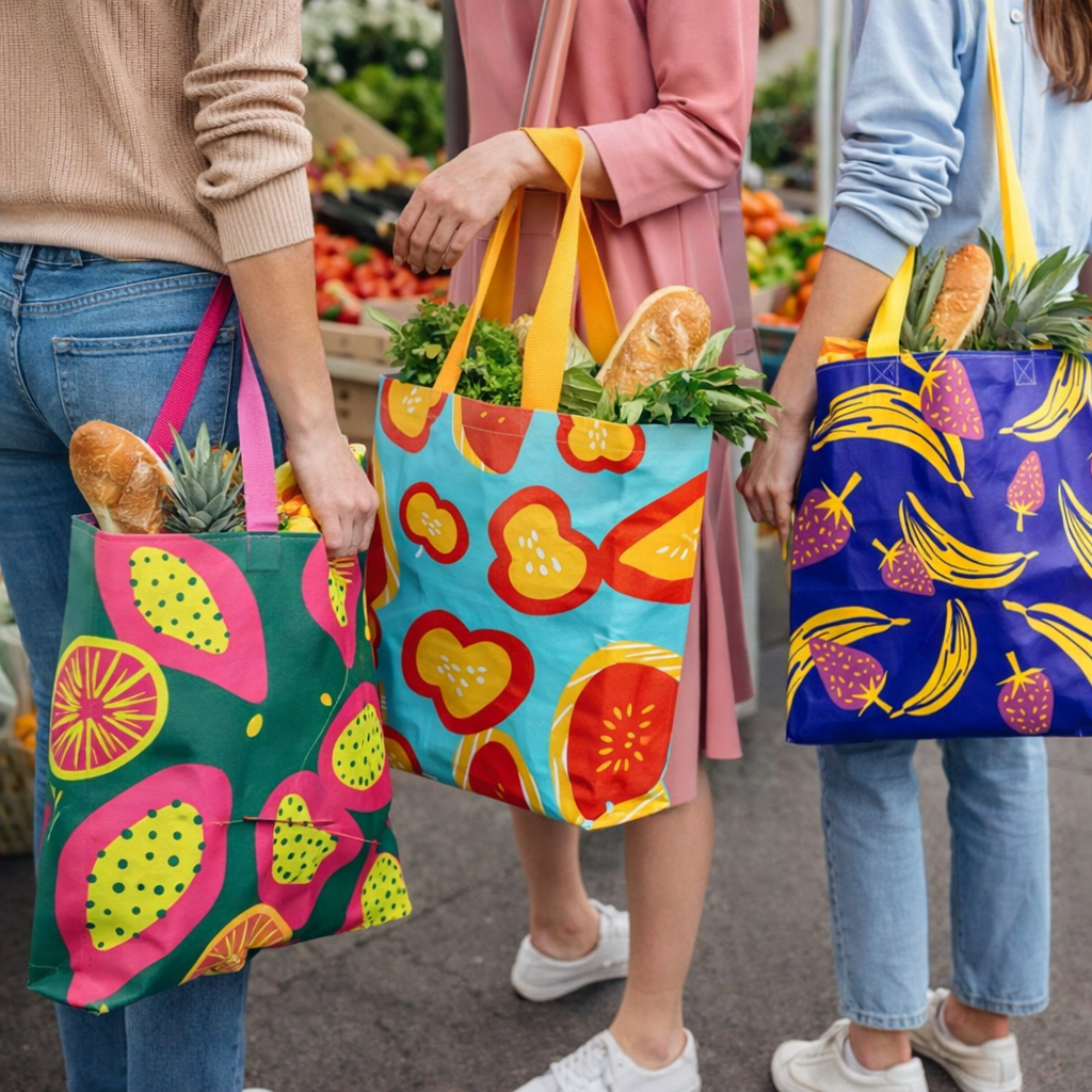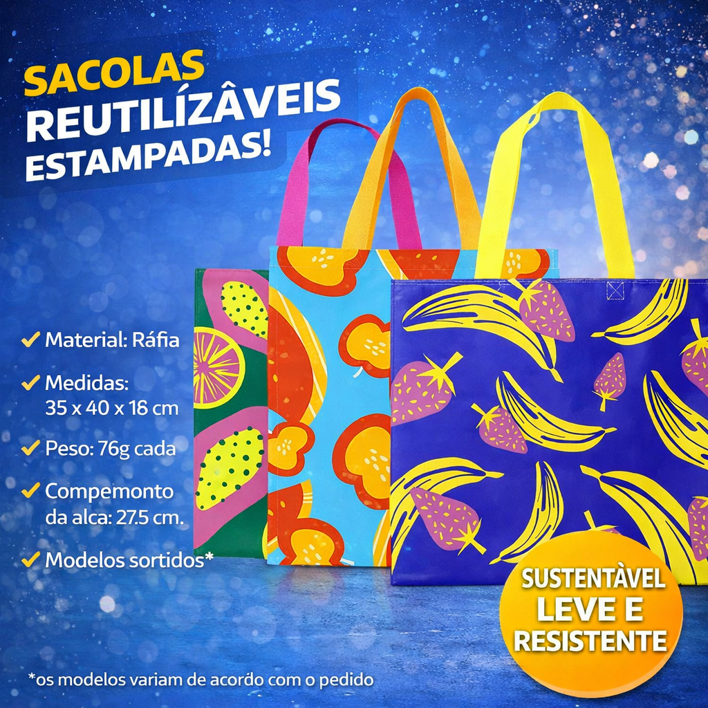 KIT 2/4/6 Sacola Grande Reutilizável Feira Mercado Camping Ecobag