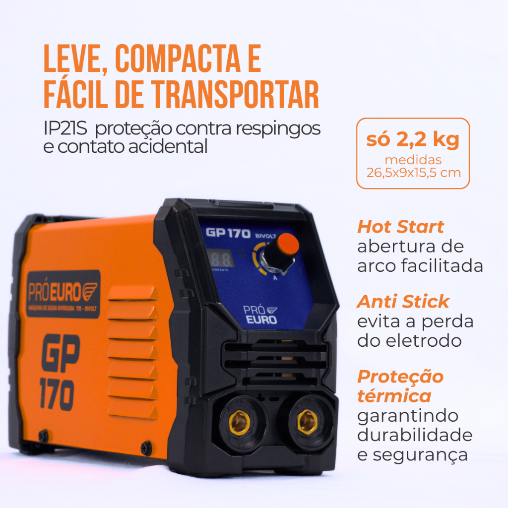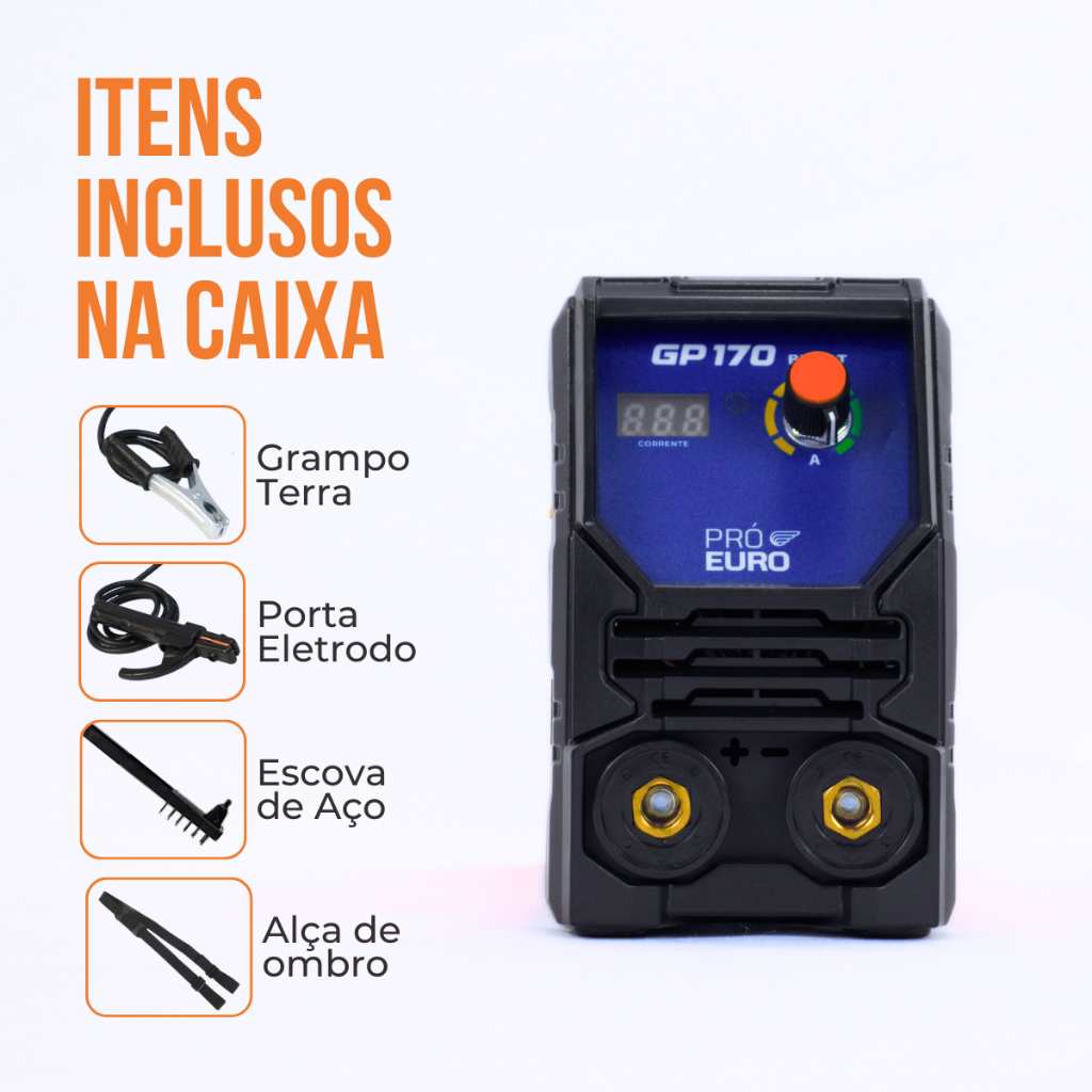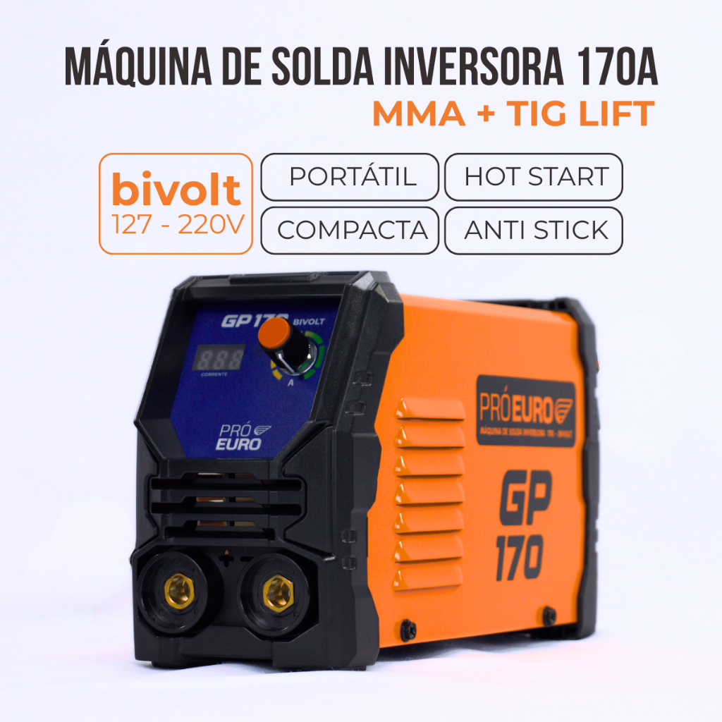 Máquina de Solda Inversora GP 170A Bivolt Pró Euro MMA TIG Lift Portátil Profissional