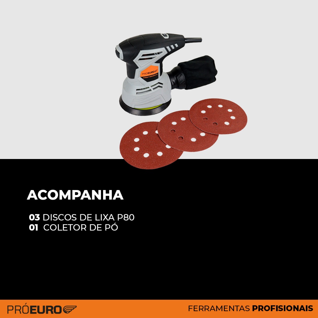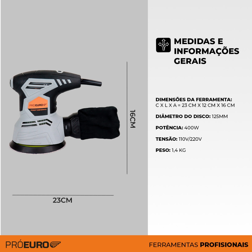 Lixadeira Roto Orbital de 7 Velocidades Profissional 400W Disco 125mm 220V - Pró Euro