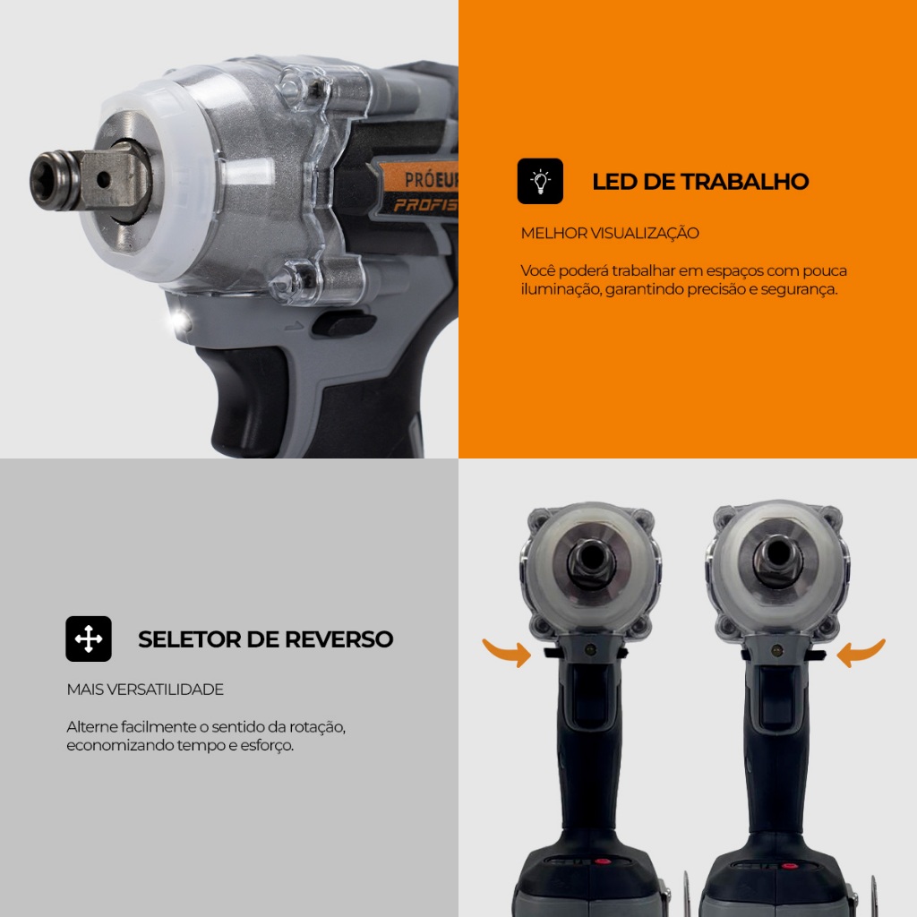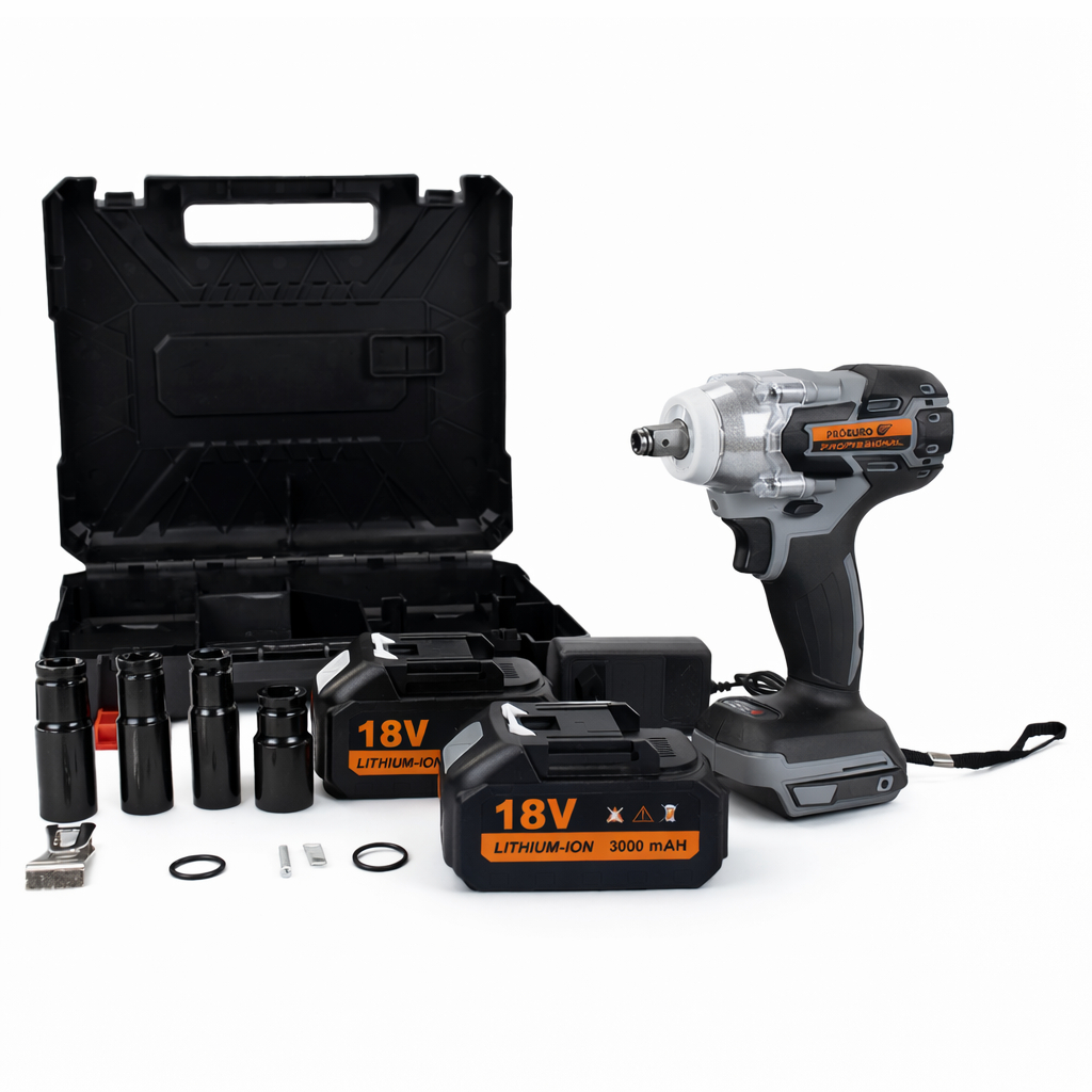 Chave de Impacto Brushless Profissional 300Nm 18V 2400RPM + Maleta e acessórios Pró Euro