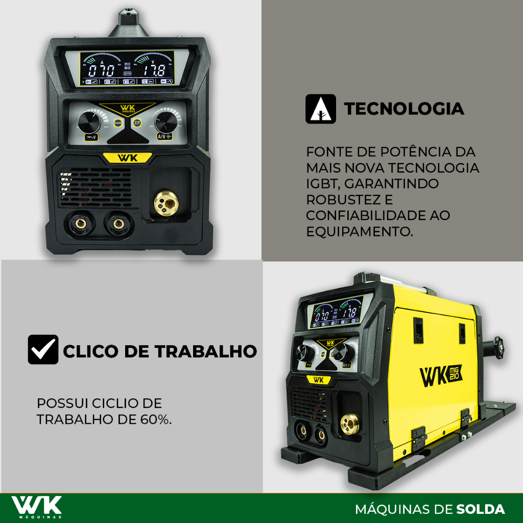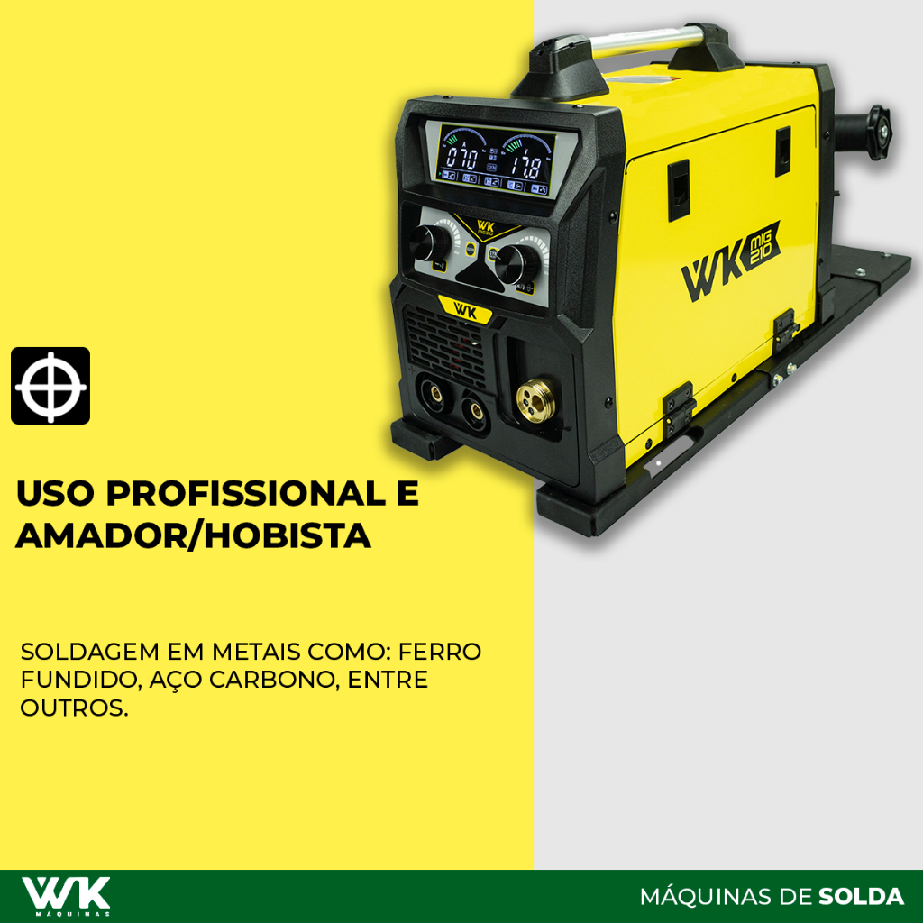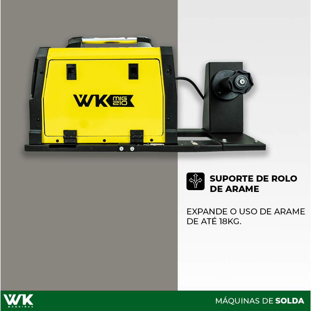 Máquina de Solda WK 210A 220V MIG com/sem gás MMA TIG LIFT + Suporte Arame 18kg Pró Euro
