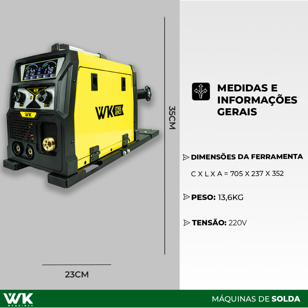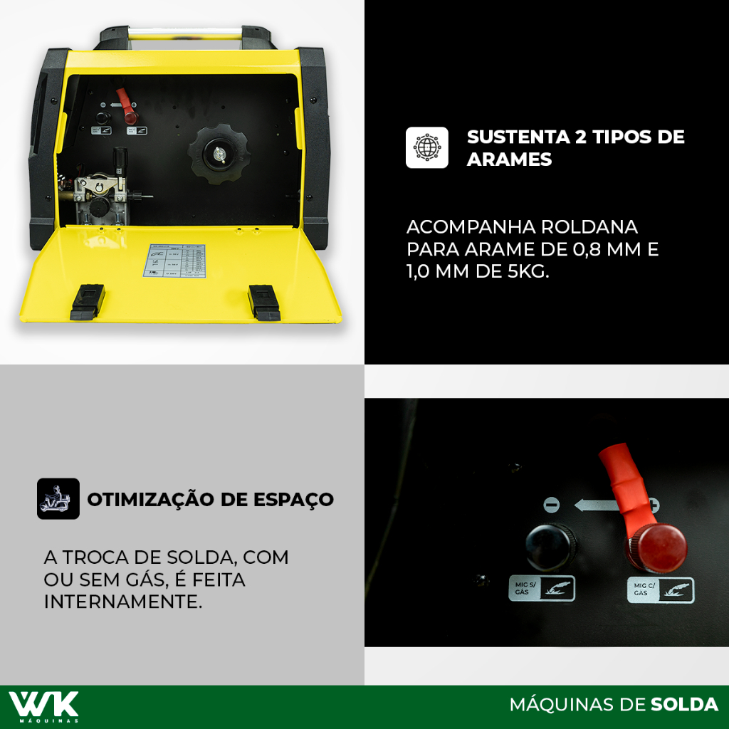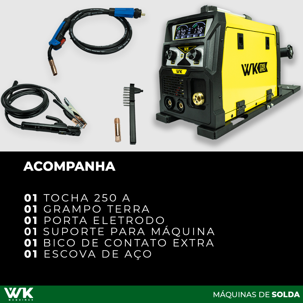 Máquina de Solda WK 210A 220V MIG com/sem gás MMA TIG LIFT + Suporte Arame 18kg Pró Euro