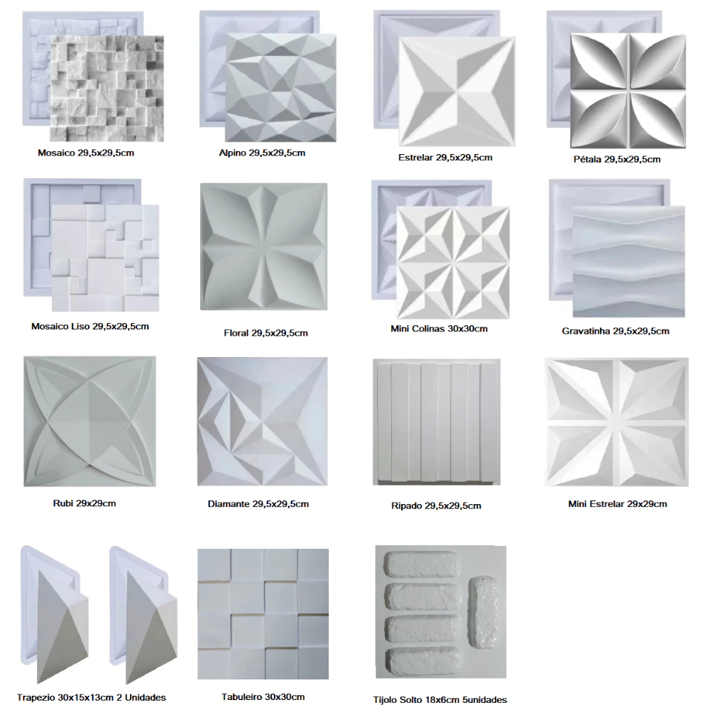 Molde 3d Para Gesso Vários Modelos 29x29cm / 29,5x29,5cm / 30x30cm em ABS 1mm