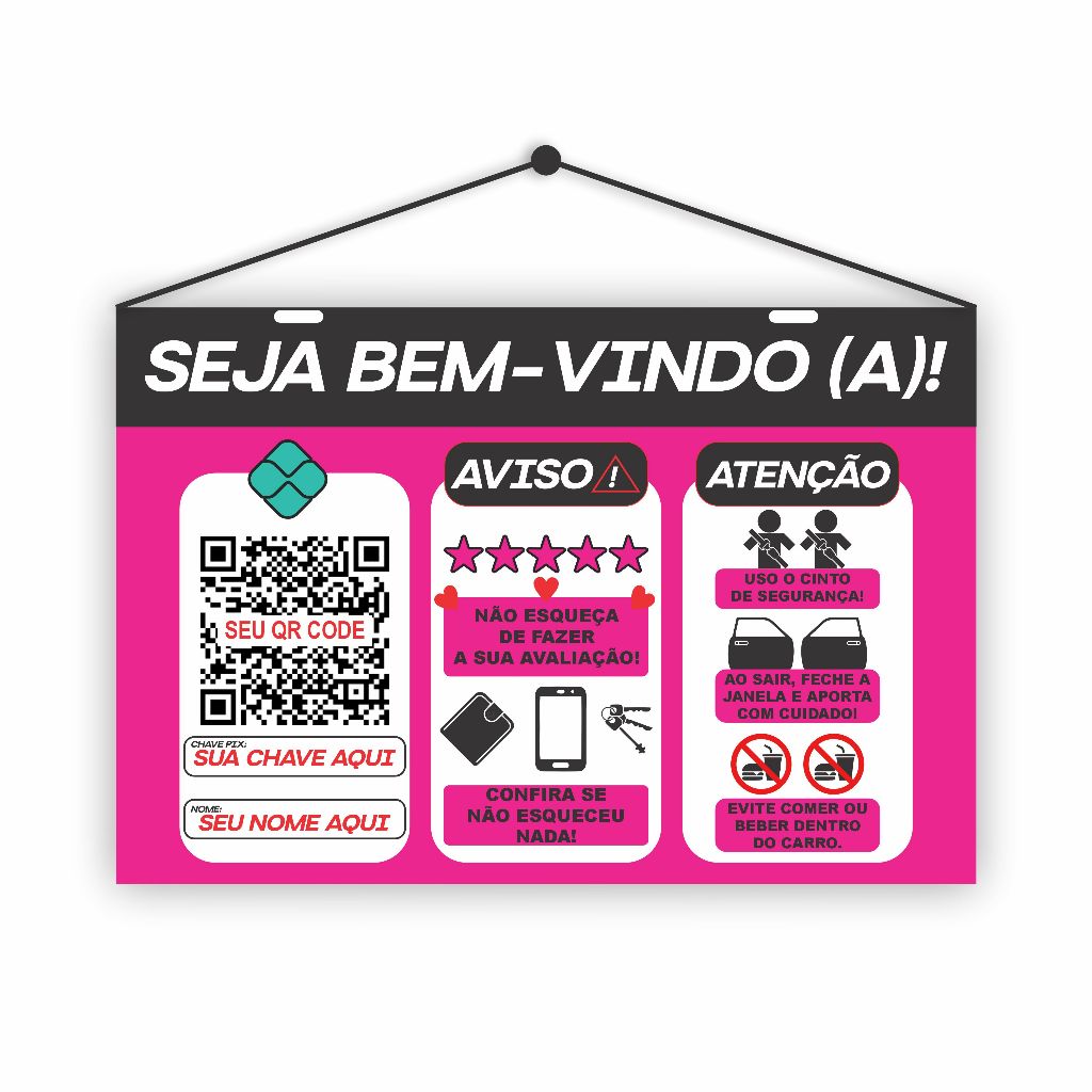 Placa Pix Qr Code Uber 99 Táxi Personalizada PVC com fio de nylon para pendurar