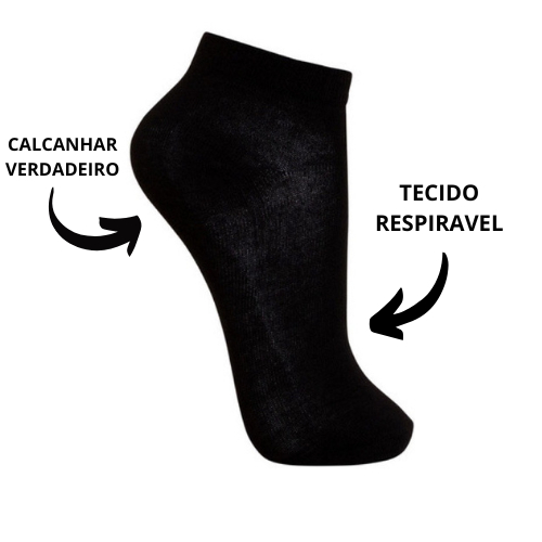 Kit Até 24 Pares de Meias Pretas Soquete Cano Curto Masculina Feminina Unissex