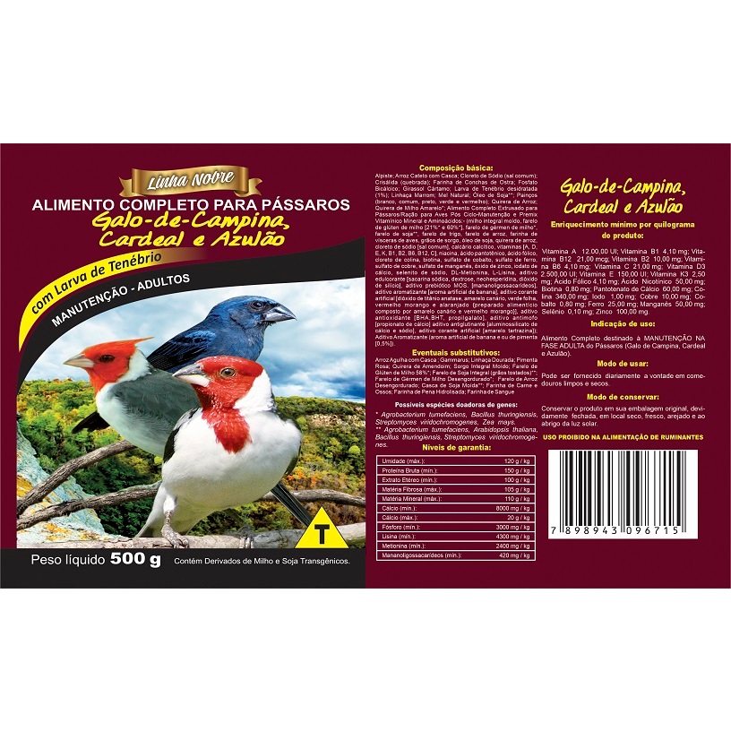 RAÇÃO GALO DE CAMPINA E AZULÃO 500G RAPOSO NUTRIÇÃO.